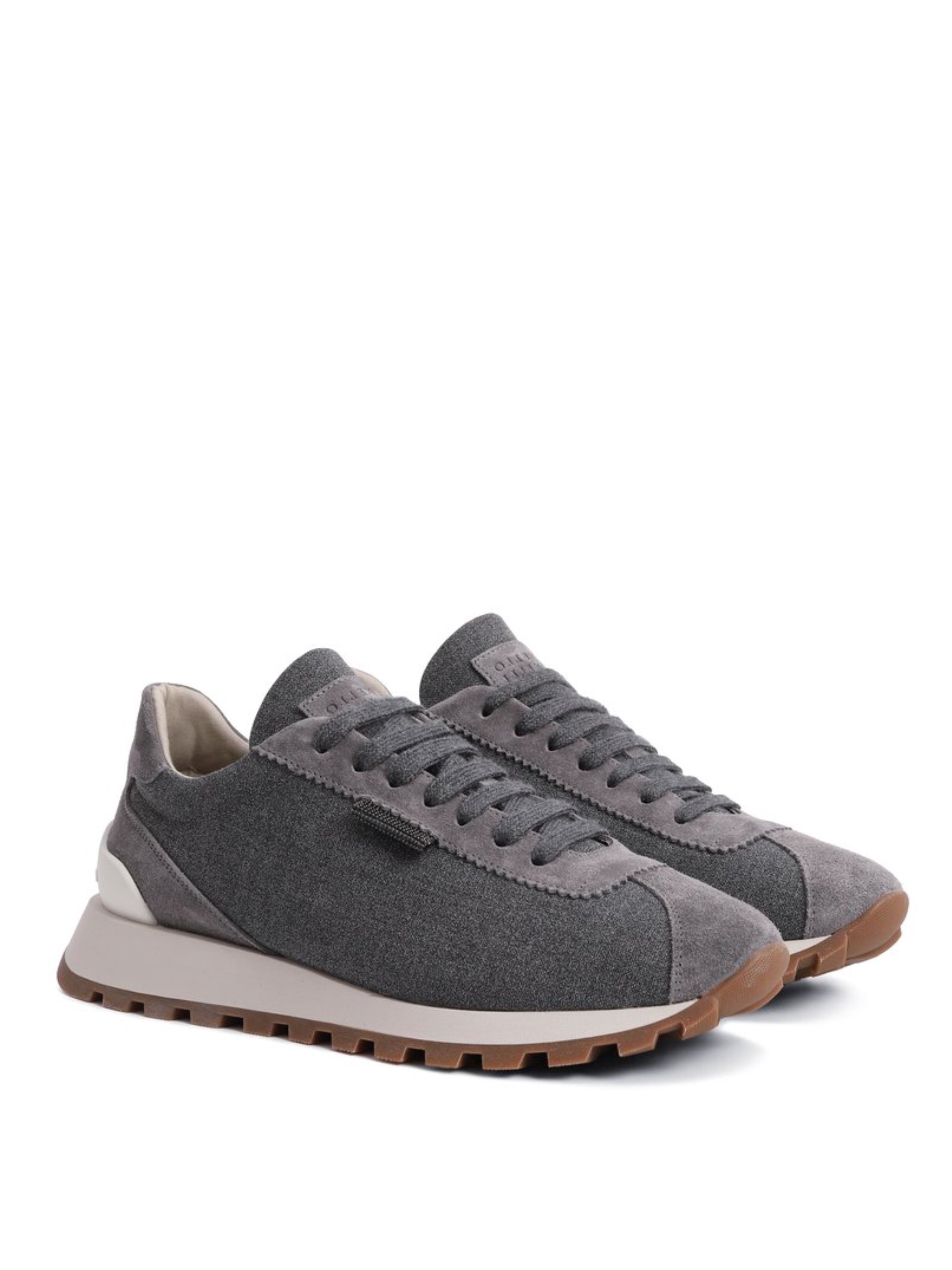 Кроссовки Active на гибкой устойчивой подошве сшили из шерстяного канваса и замши. Язычок украсили брендированным патчем, основание шнуровки — ярлыком с цепочкой мониль, а пяточный стабилизатор — рельефным логотипом.