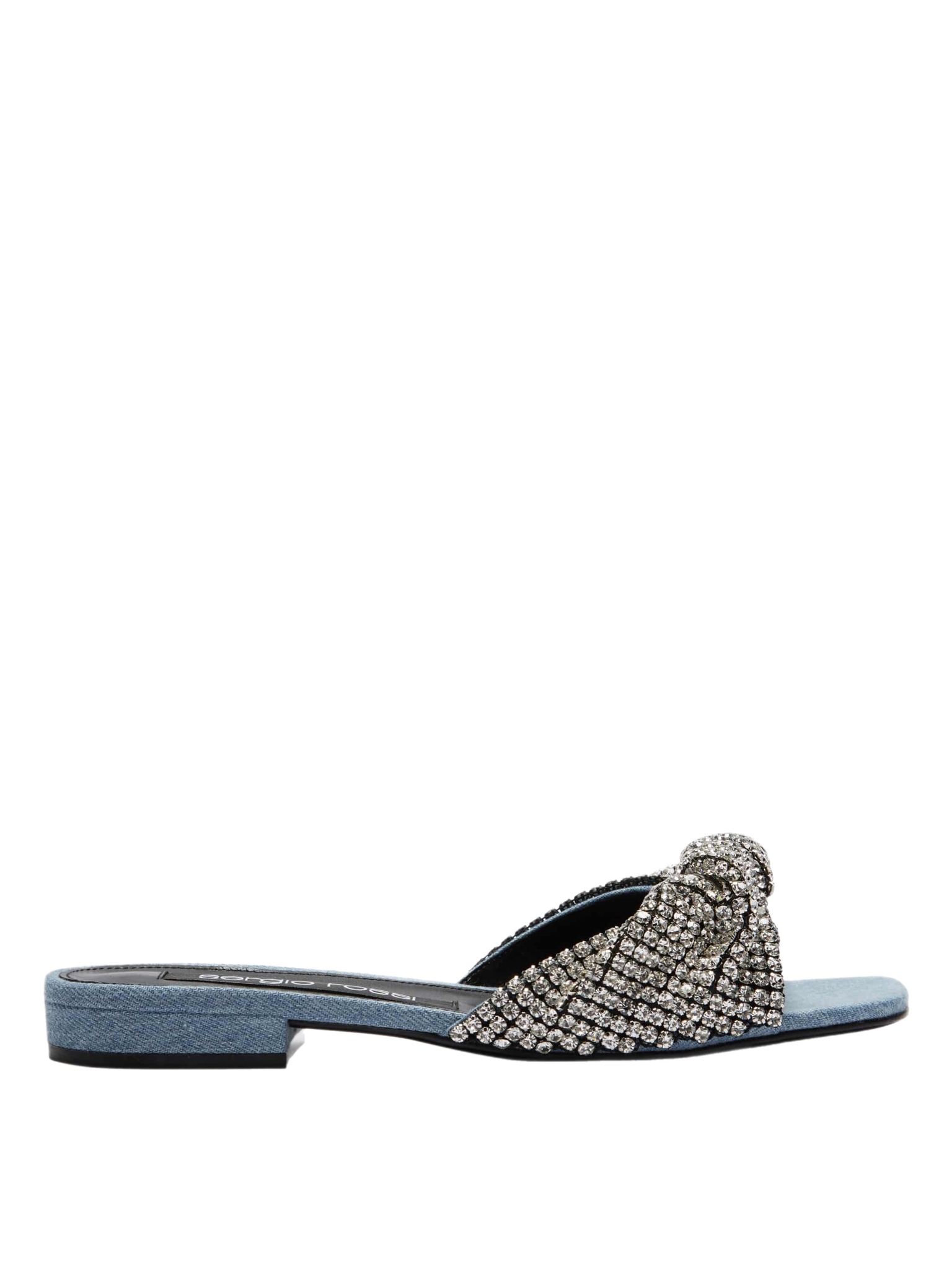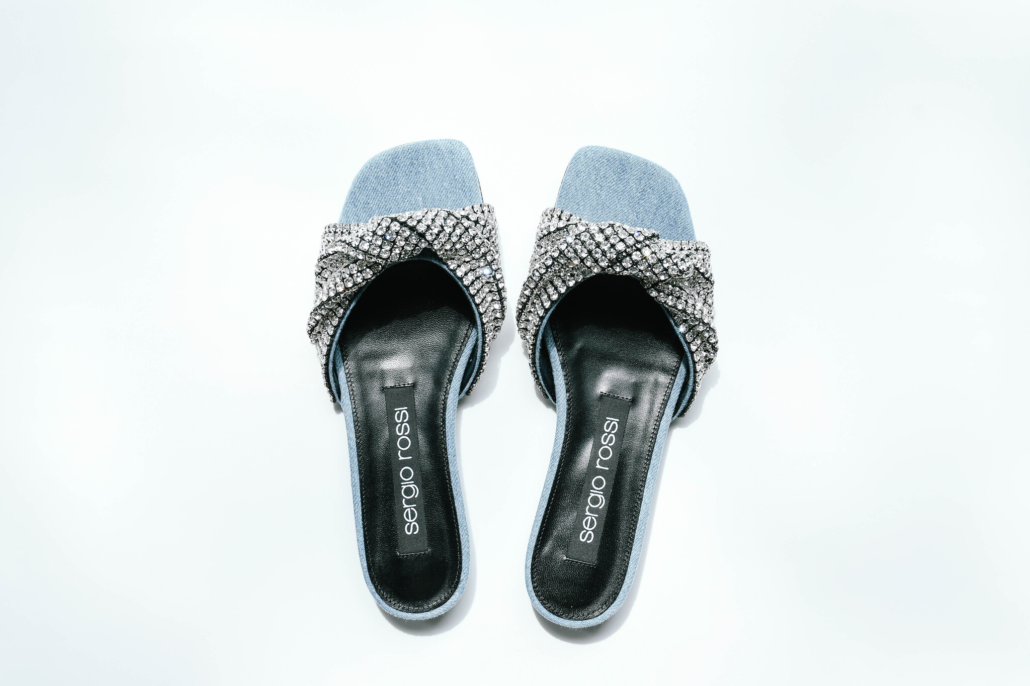 Женские сандалии Серджио Росси синего цвета. Благодаря модному джинсовому дизайну в сочетании с изысканной аппликацией из драгоценных камней, модель имеет повседневный, но повседневный, но экстравагантный вид. Угловая форма также добавляет завершающий штрих.