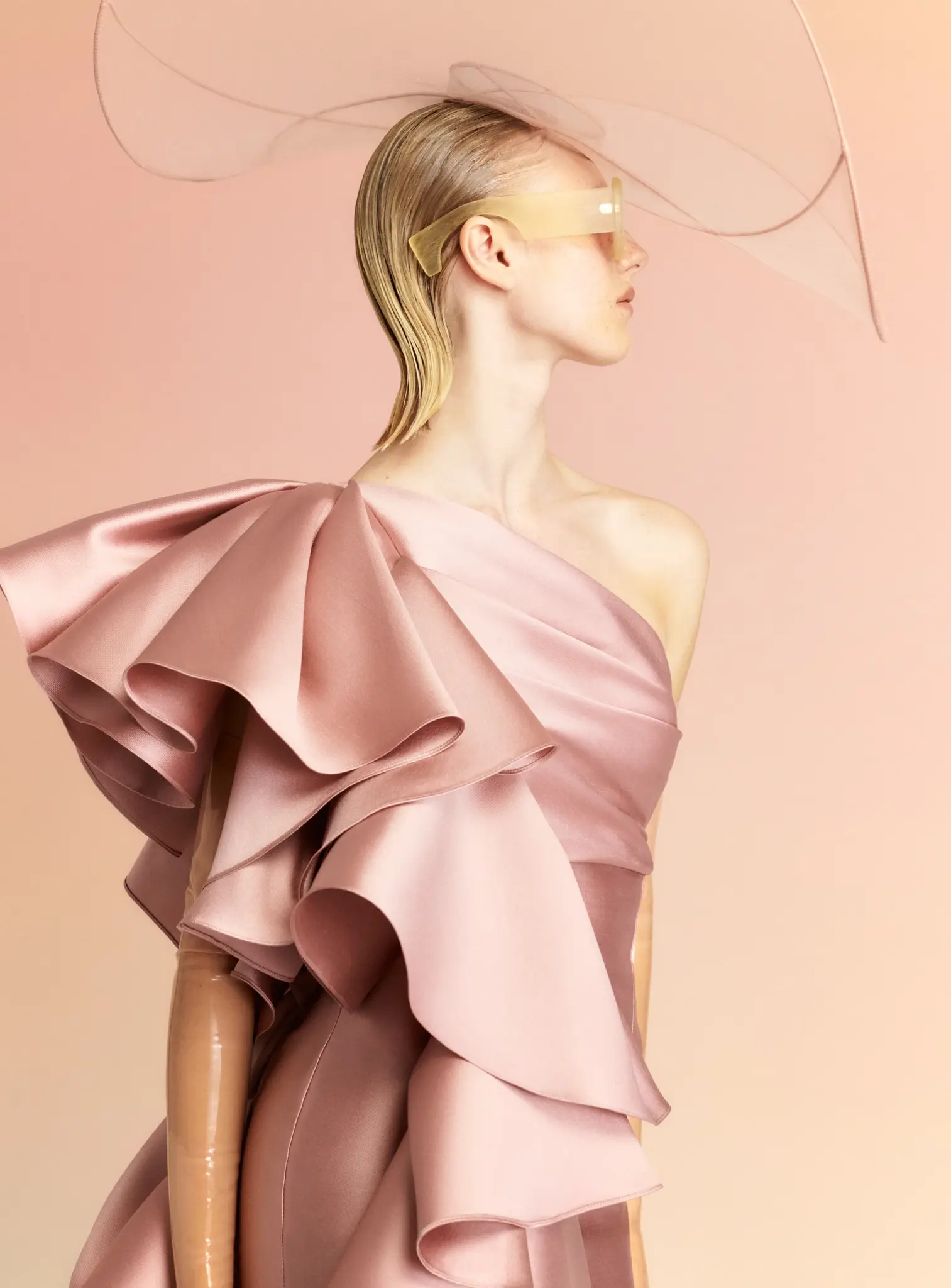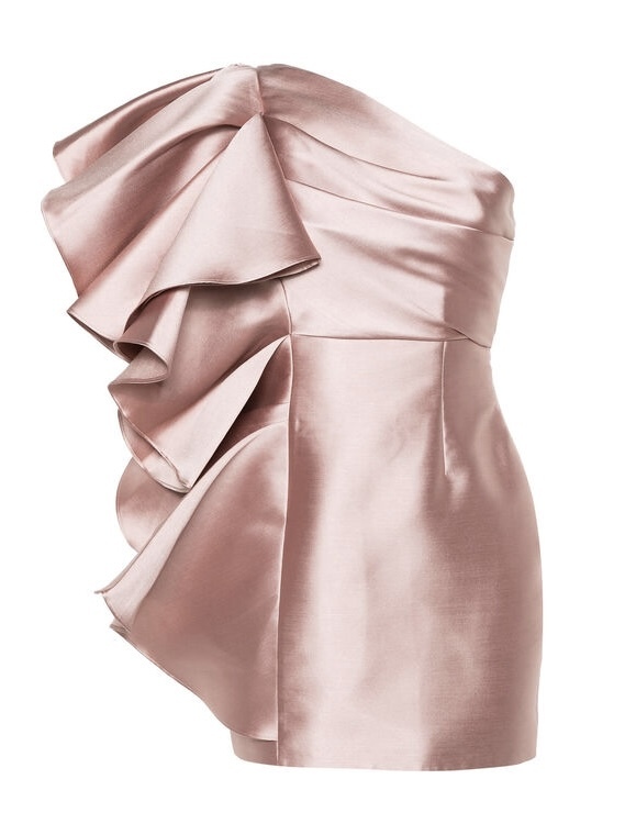 Мини-платье Solace London Rio на одно плечо с верхом цвета чайной розы тафты, объемным бантом по всей длине платья.