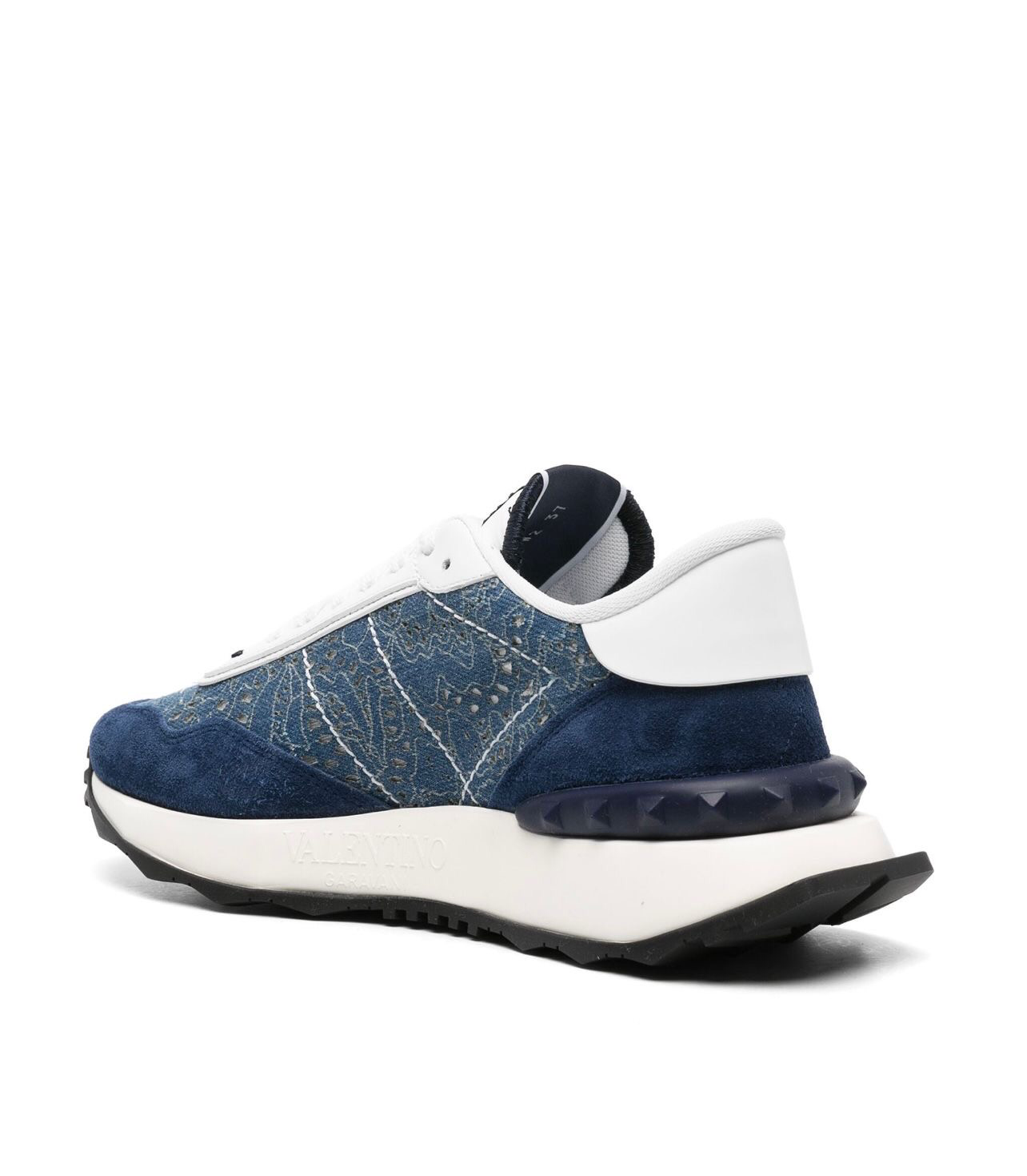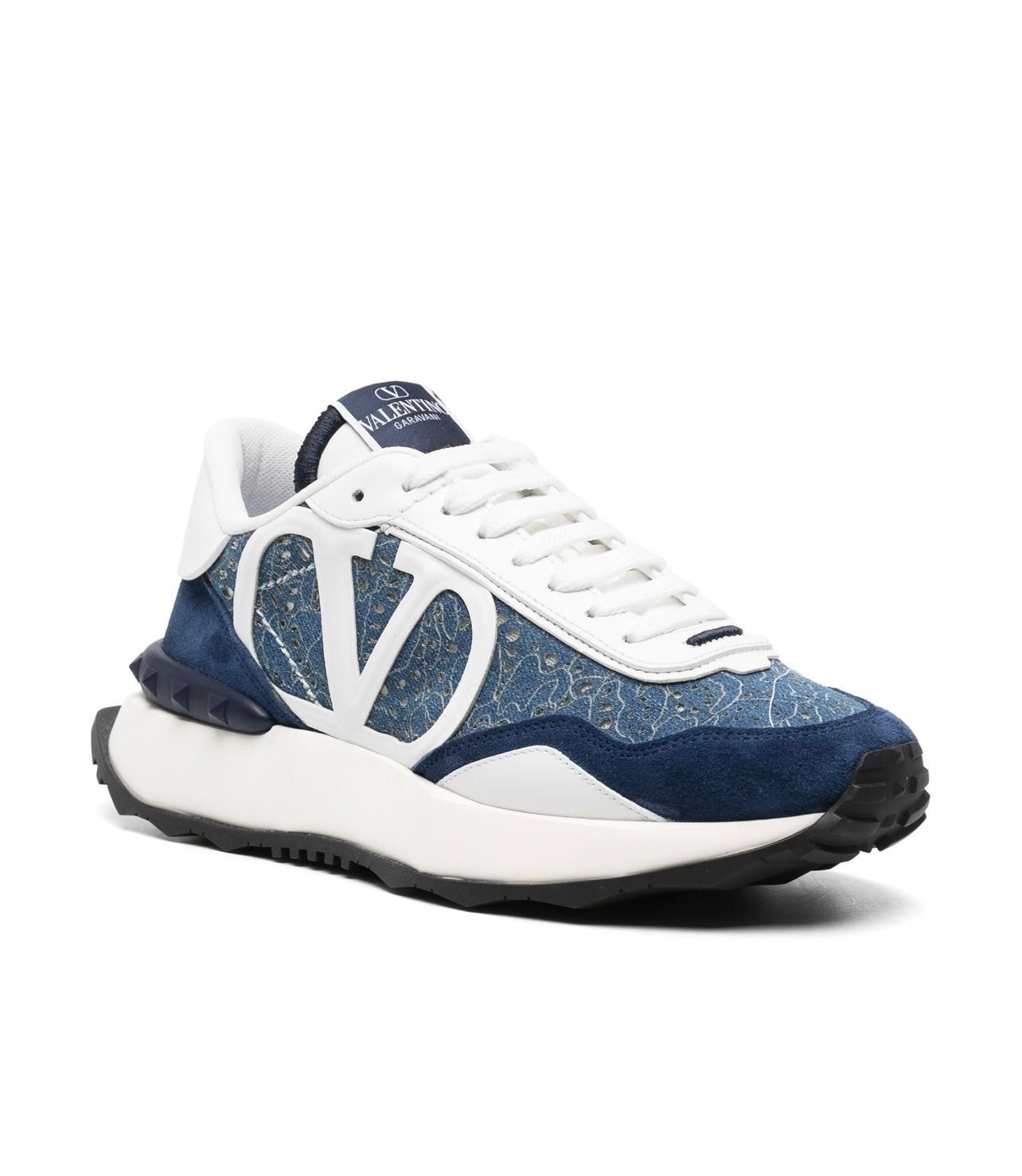 Кроссовки LACERUNNER комбинированные из денима, замши и кожи. В кроссовках Пьерпаоло Пиччоли искусно соединил динамику спортивной обуви с женственностью, демонстрирующей характерную для бренда эстетику. Изделие сбоку декорировали крупными аппликациями в виде символа VLogo. Впервые Валентино Гаравани украсил им изделия марки в 1970-х.