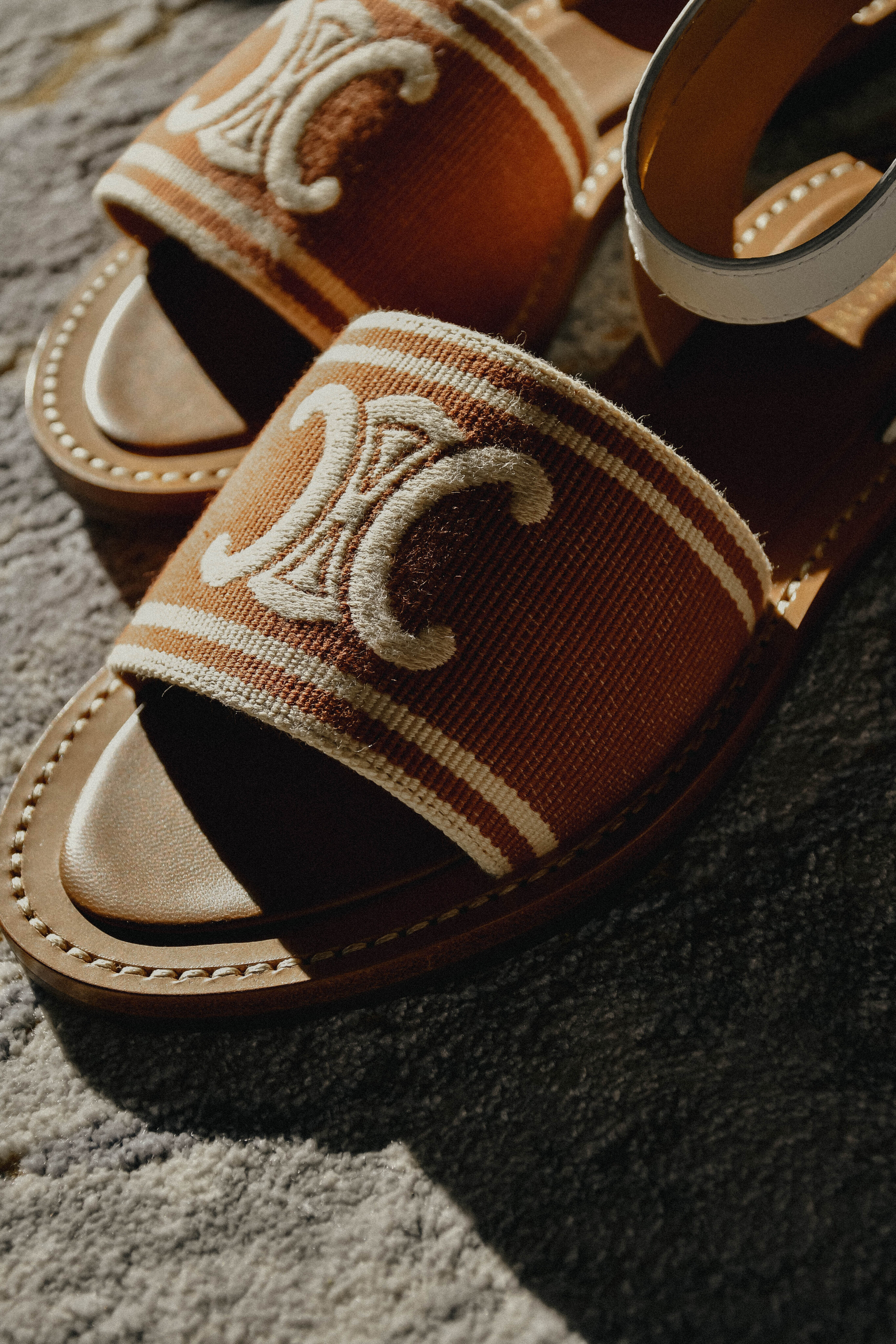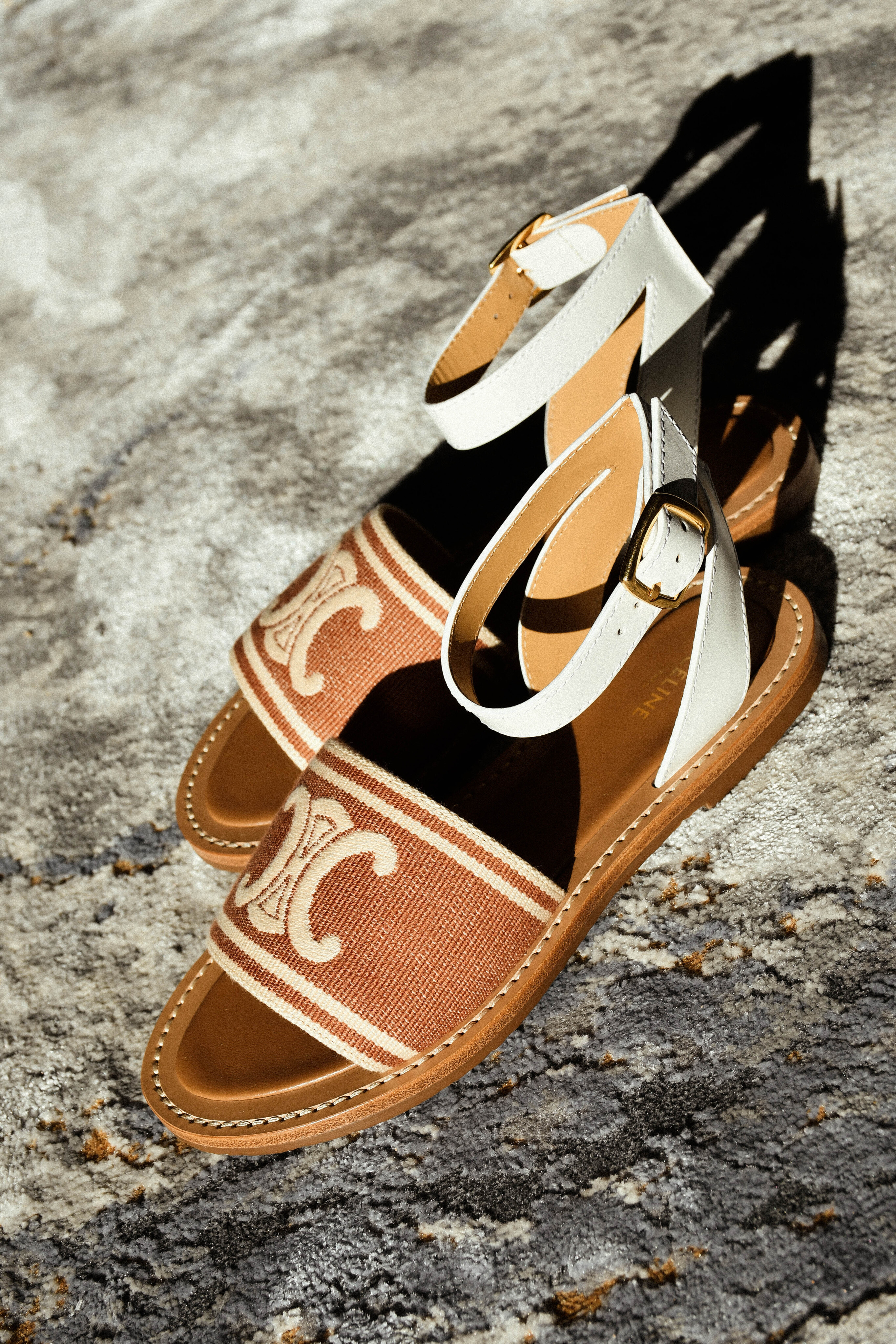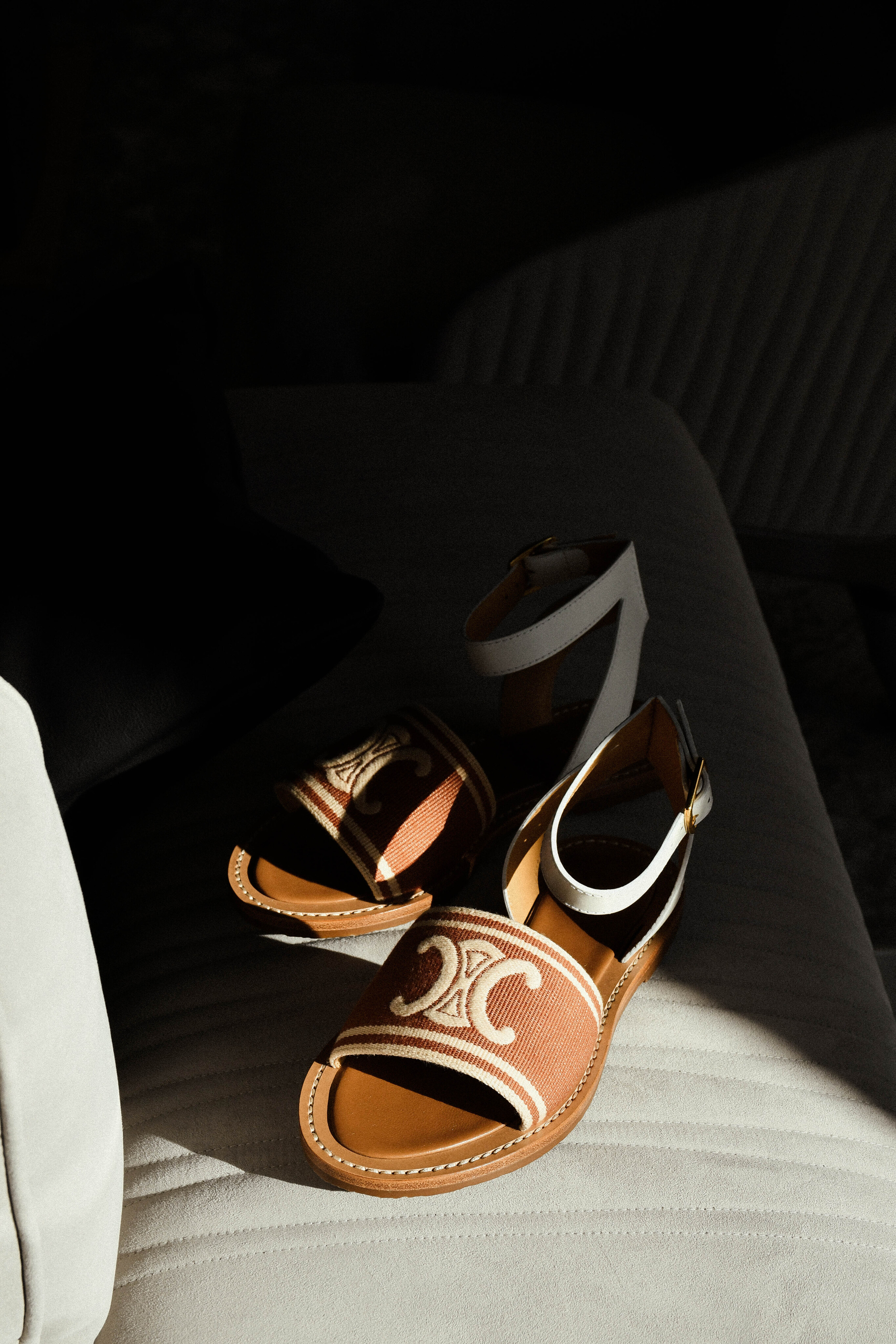 Босоножки Celine Lympia из ткани Triomphe Jacquard Canvas и телячьей кожи. Лаконичная модель для тетних образов.