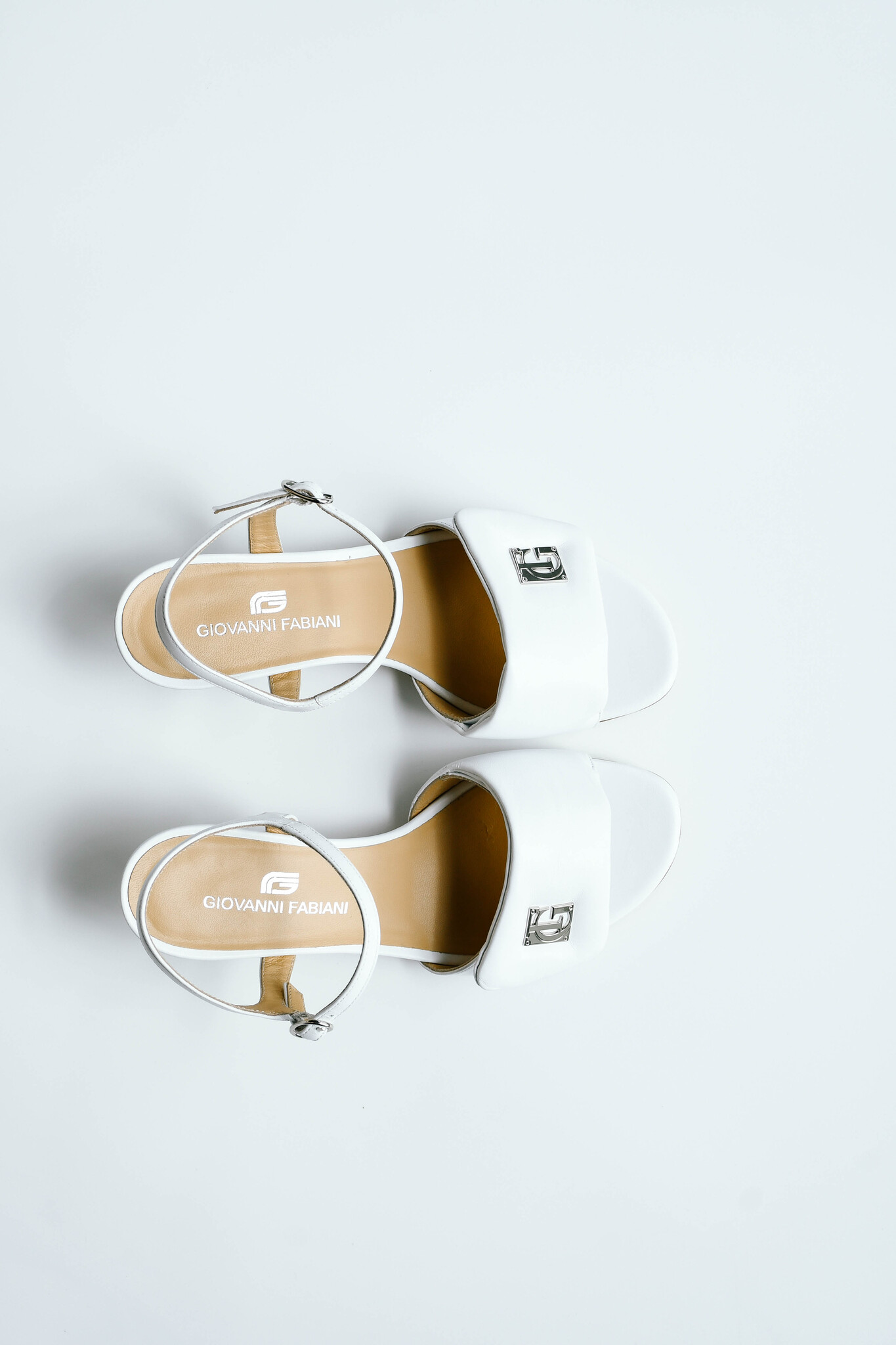 Белые босоножки на небольшом каблуке.