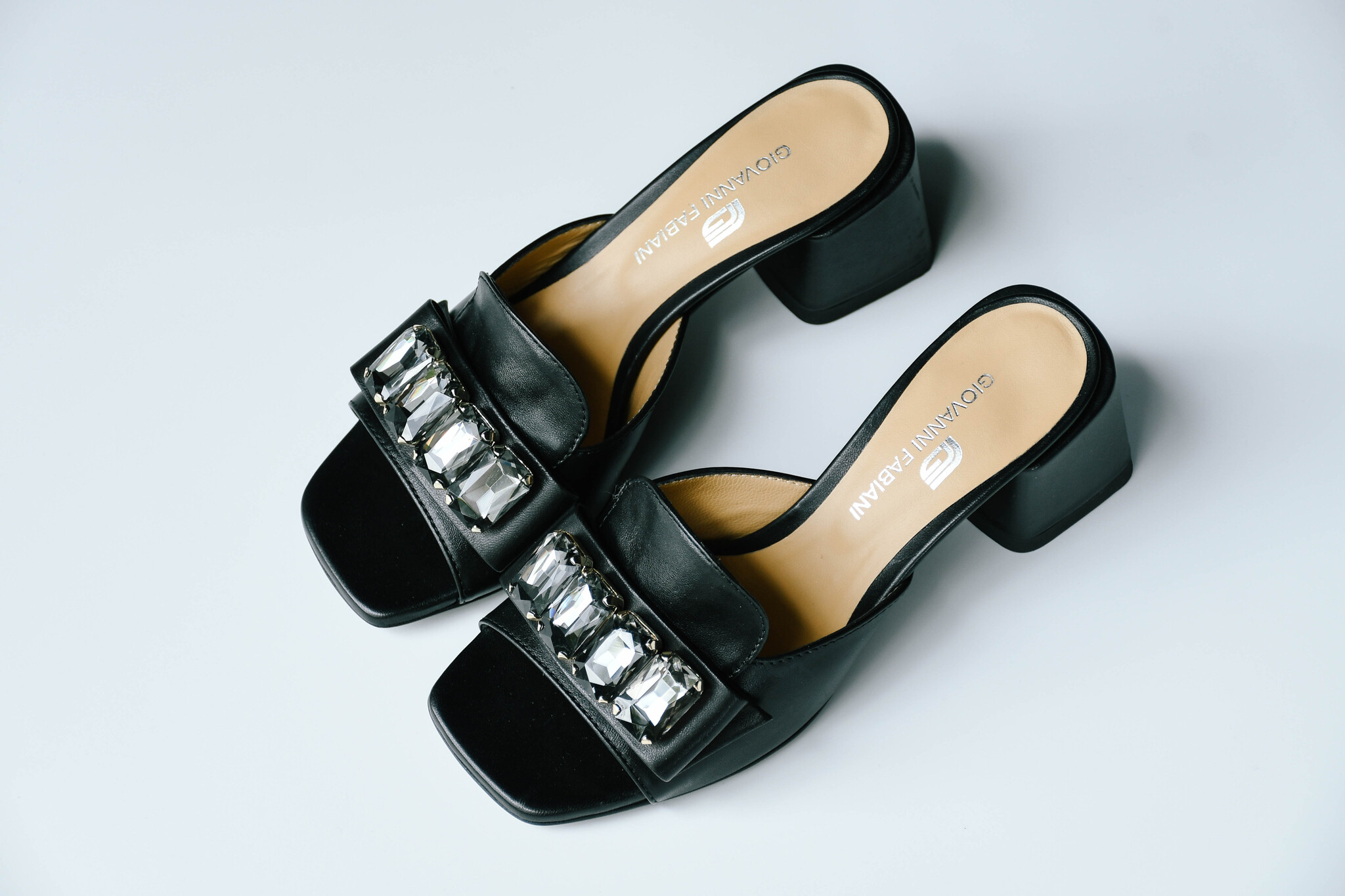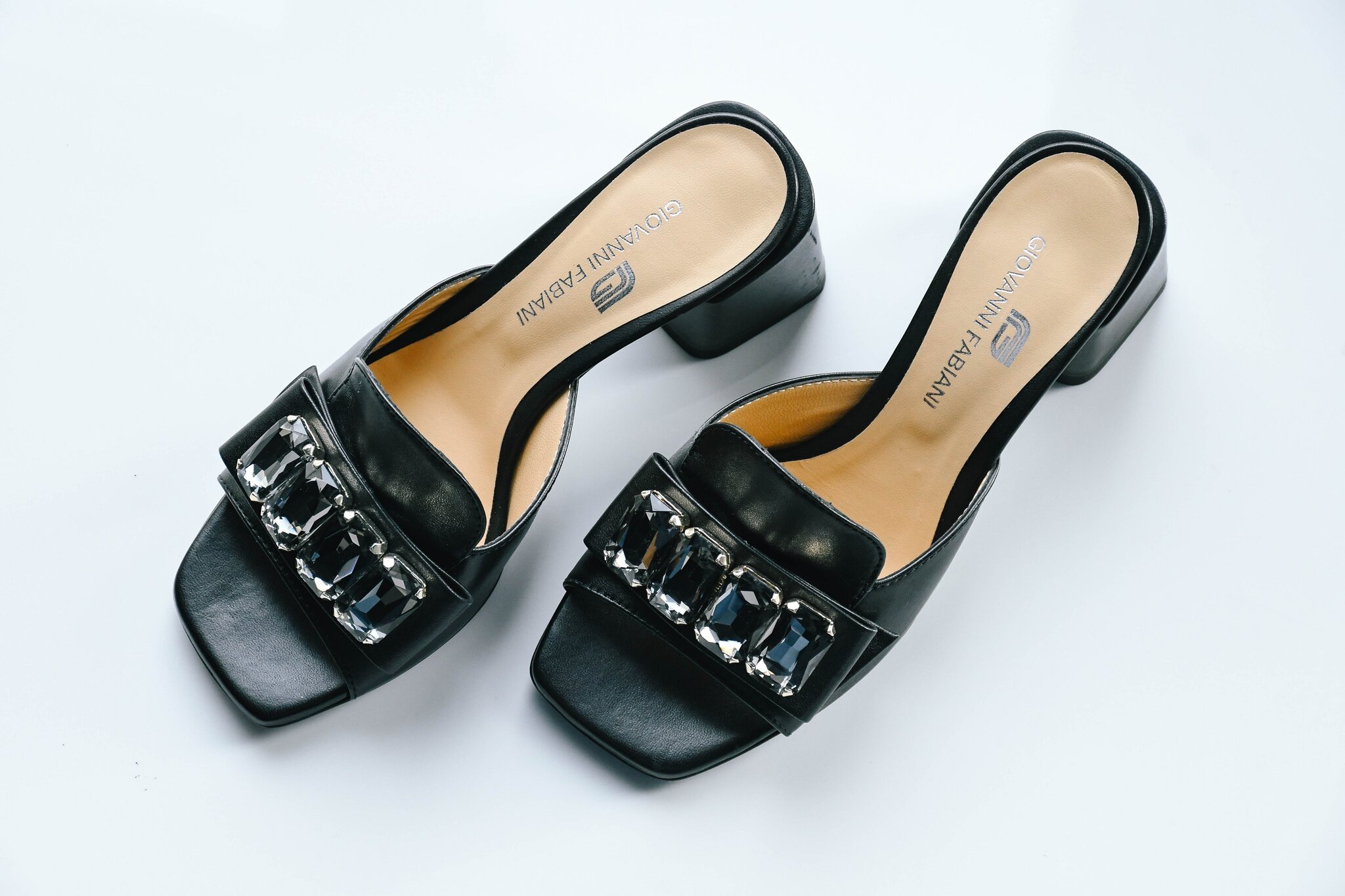 Сабо на небольшом каблуке, украшены камнями.