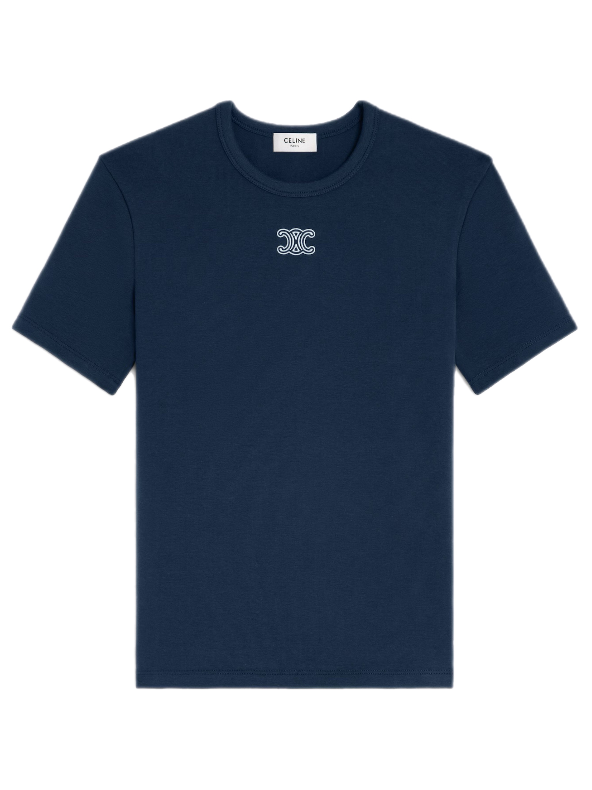 Футболка из мягкого хлопка синего цвета, дополнена на груди фирменным логотипом бренда. Ребристая отделка горловины и рукавов.