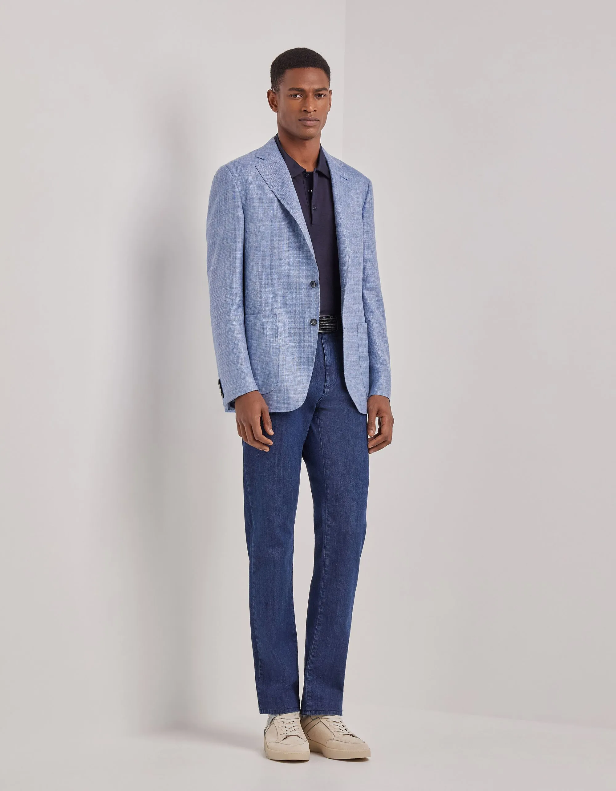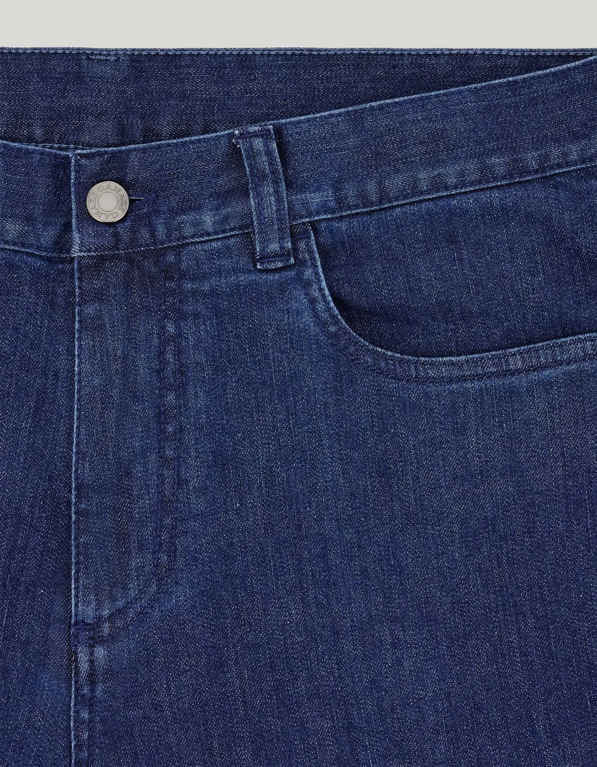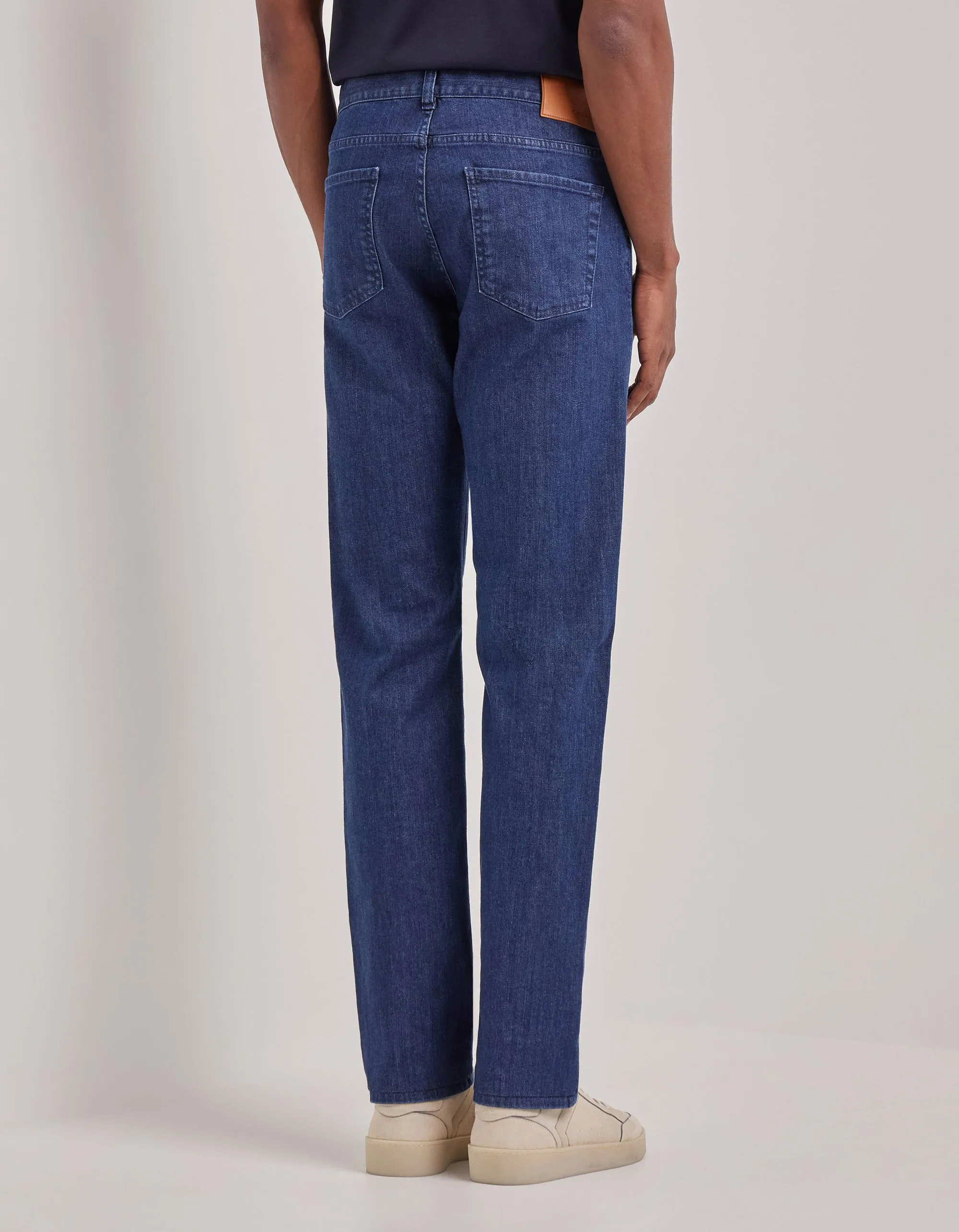 Пятикарманные эластичные джинсовые брюки с изысканным дизайном, сделанные с четкими линиями обычной посадки. Стильные детали, такие как моющаяся этикетка из натуральной кожи, подчеркивают уникальность этой повседневной одежды, предназначенной для придания изысканности и индивидуальности более повседневному образу современного джентльмена.