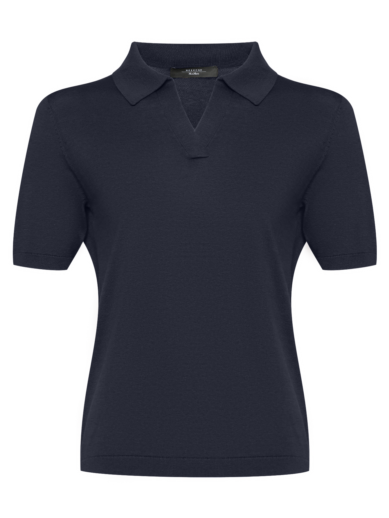 Рубашка-поло из тонкой пряжи и шерсти с короткими рукавами. На шее воротничок с V-вырезом на груди.