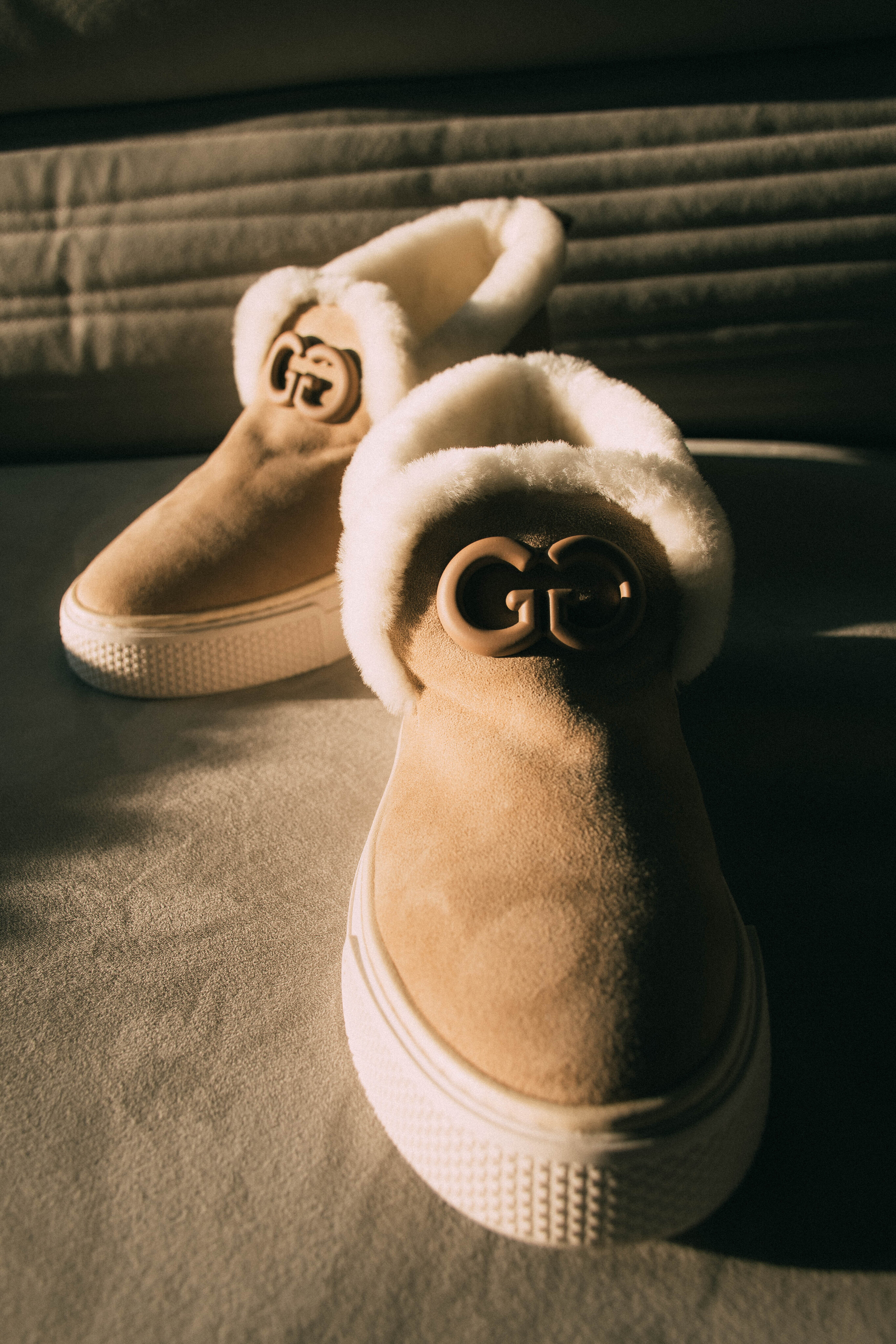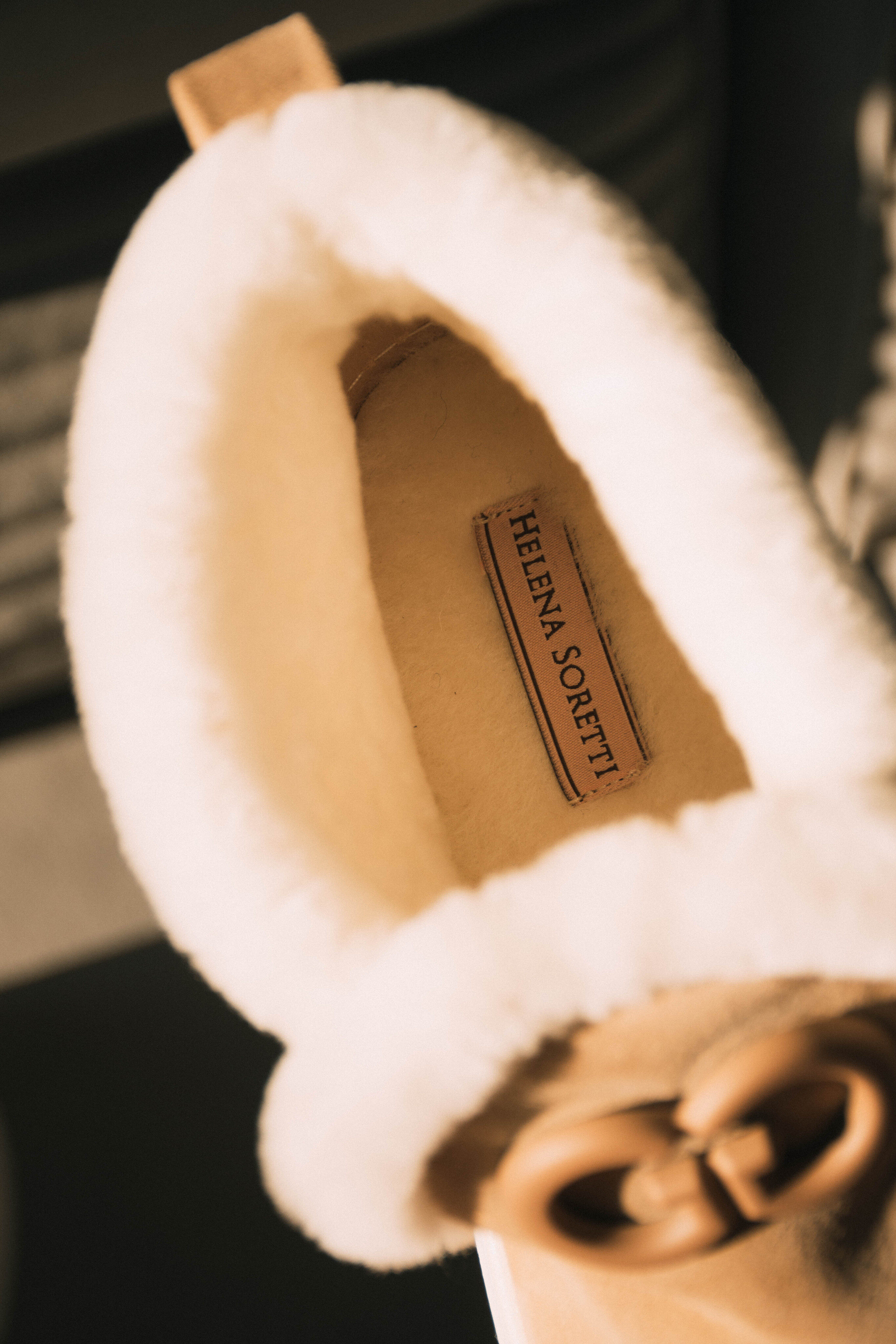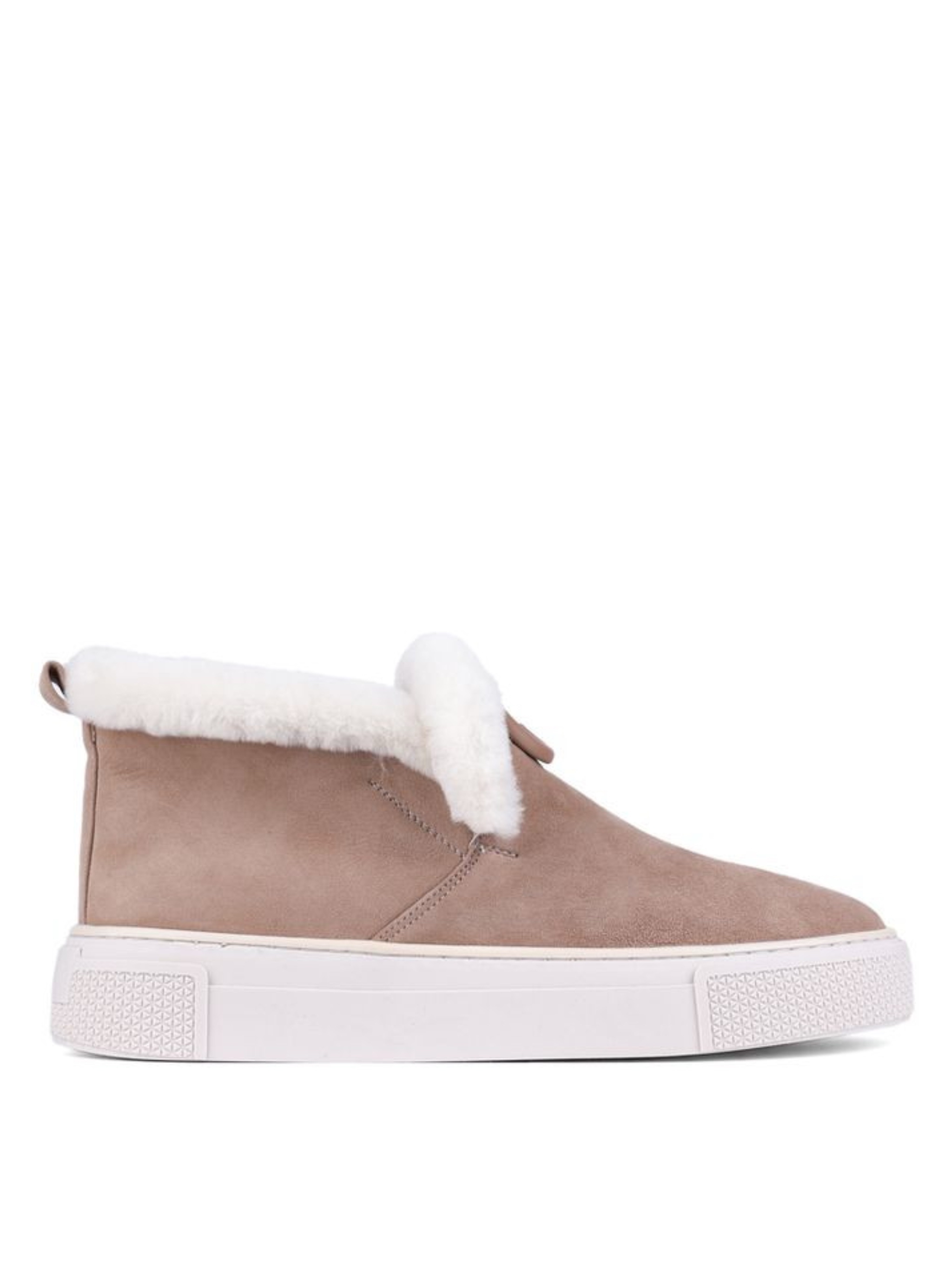Женские зимние лоферы Helena Soretti из натуральной черной бежевой замши на легкой подошве. Внутри густой белый мех, завершающий стиль. Украшены маленьким логотипом бренда.
