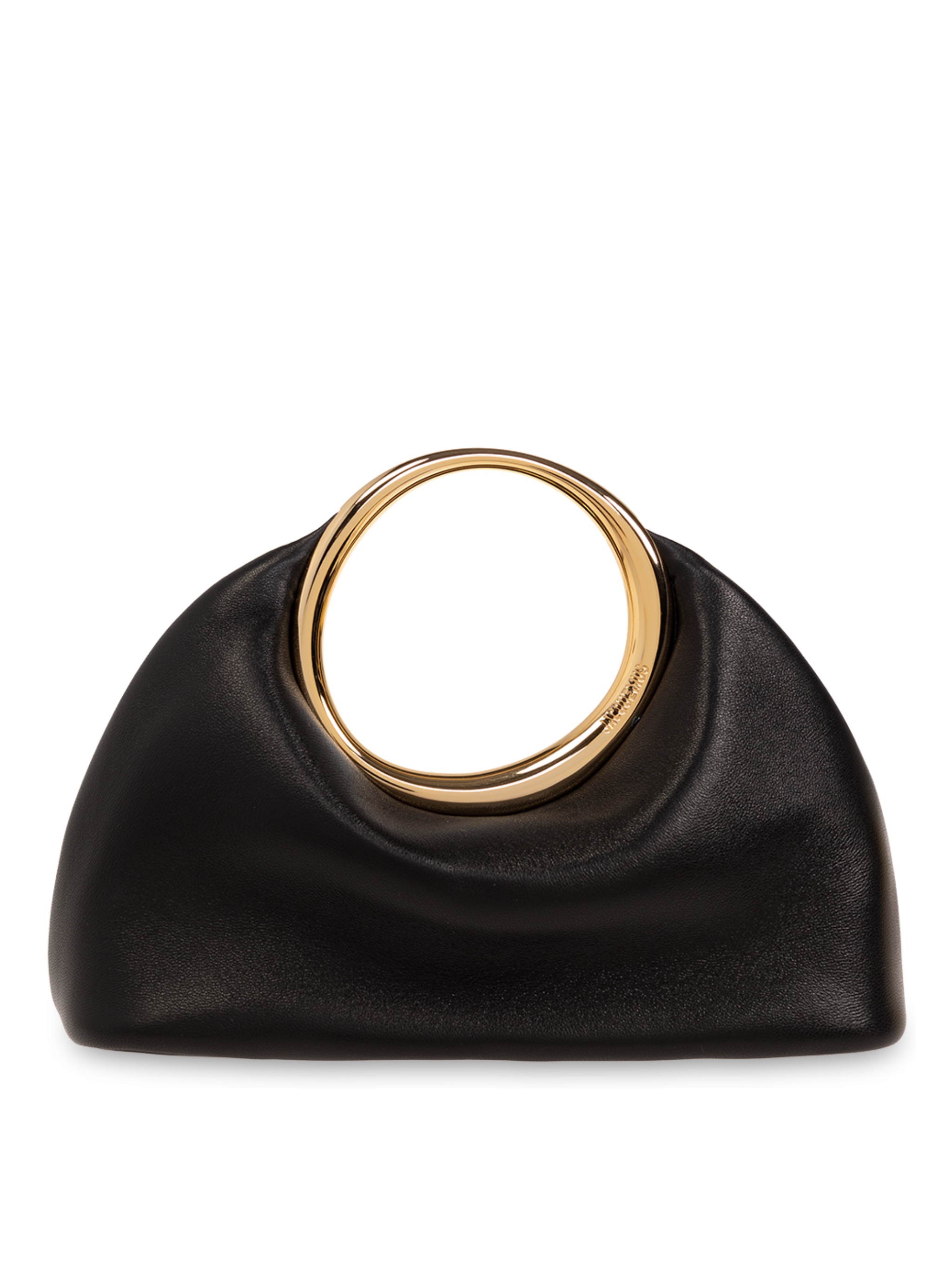 Черная кожа наппа структурированные верхние ручки гравированный логотип регулируемый съемный плечевой ремень застежка-молния сверху основное отделение карман на задней стенке фурнитура золотистого цвета