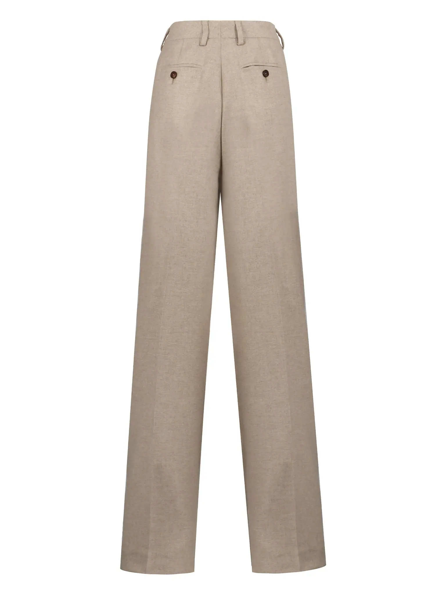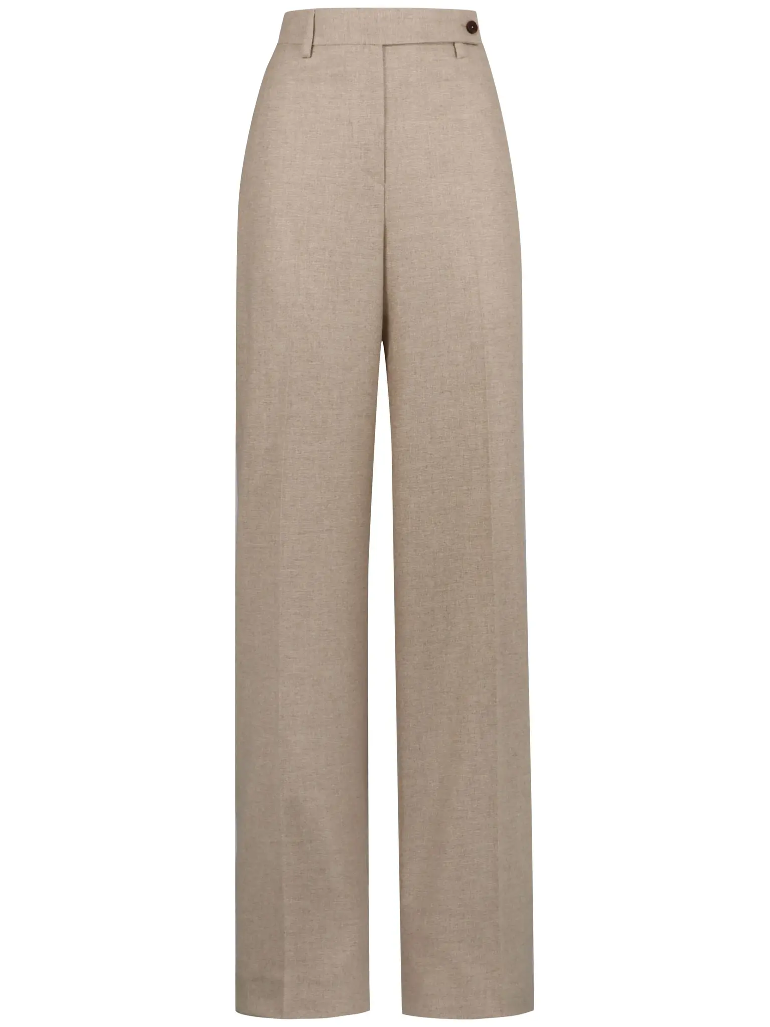 Прямые брюки с высокой посадкой и стрелками дополнили двумя боковыми и парой задних карманов. Модель из премиального кашемира, визуально удлиняющая ноги.