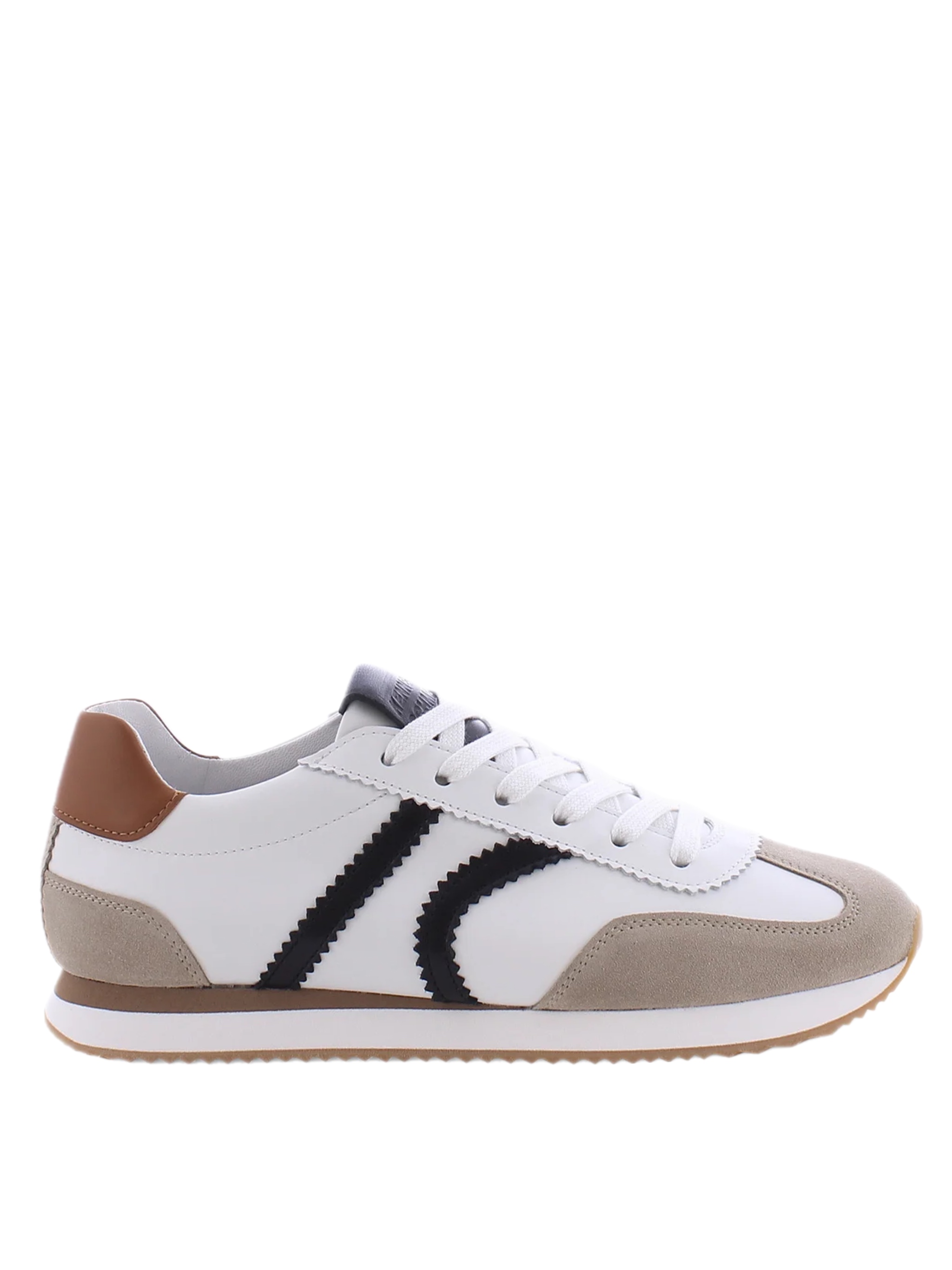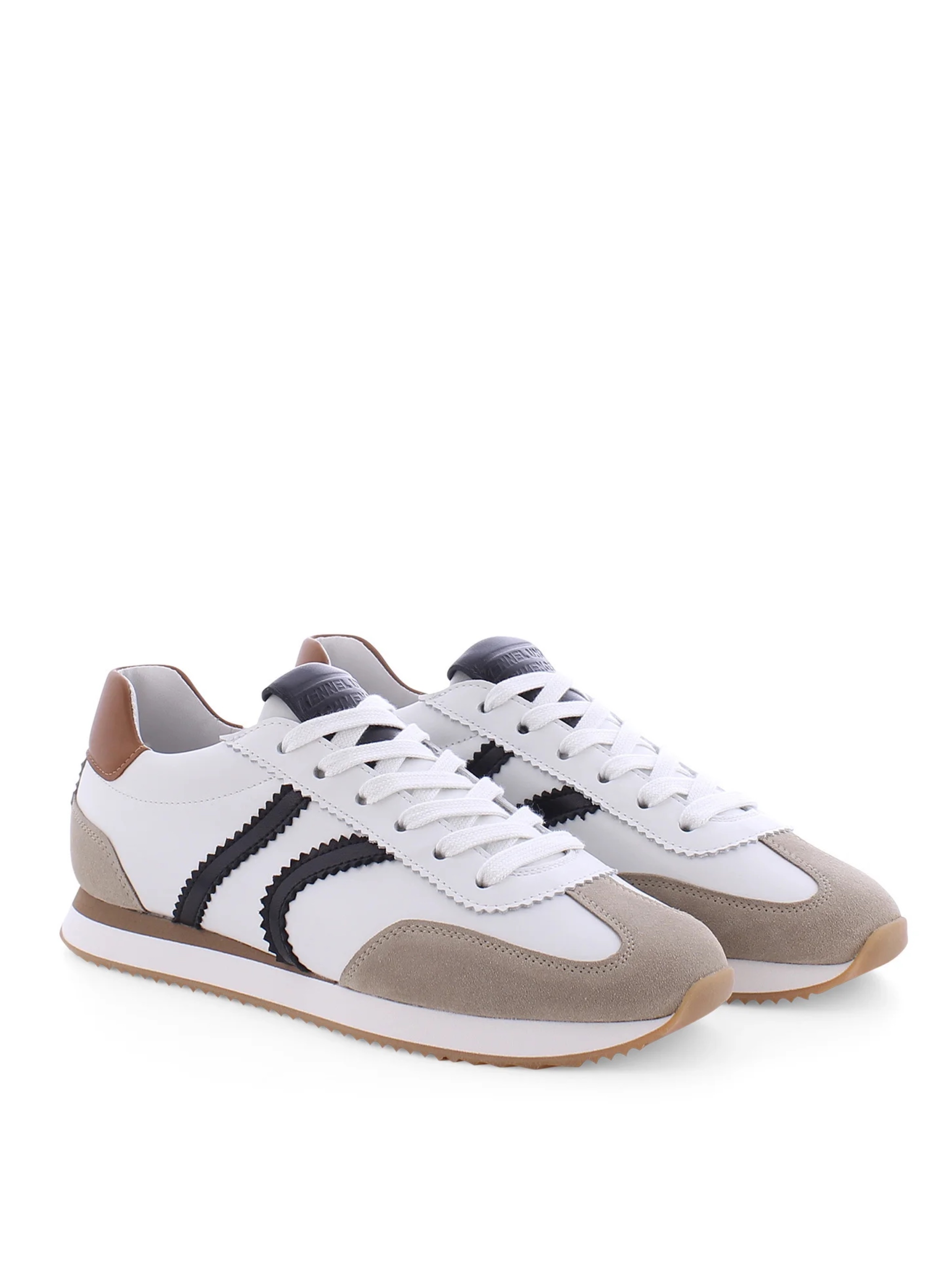 Изысканные кроссовки от немецкого бренда Kennel & Schmenger — это настоящий шедевр современной обувной эстетики, в котором молочный оттенок кожи переплетается с шоколадным бархатом замши. Эта искусная игра контрастов создает образ, наполненный аристократичным спокойствием и динамикой городского шика. Глянцевая поверхность белой кожи эффектно подчеркнута графичными штрихами черных кожаных вставок, превращая спортивный силуэт в объект высокого стиля. Массивная подошва с выразительным протектором дарит уверенность каждому шагу, сочетая в себе брутальную мощь и легкость. Немецкая точность кроя гарантирует безупречный комфорт, делая эту пару желанным сокровищем для искушенного гардероба.