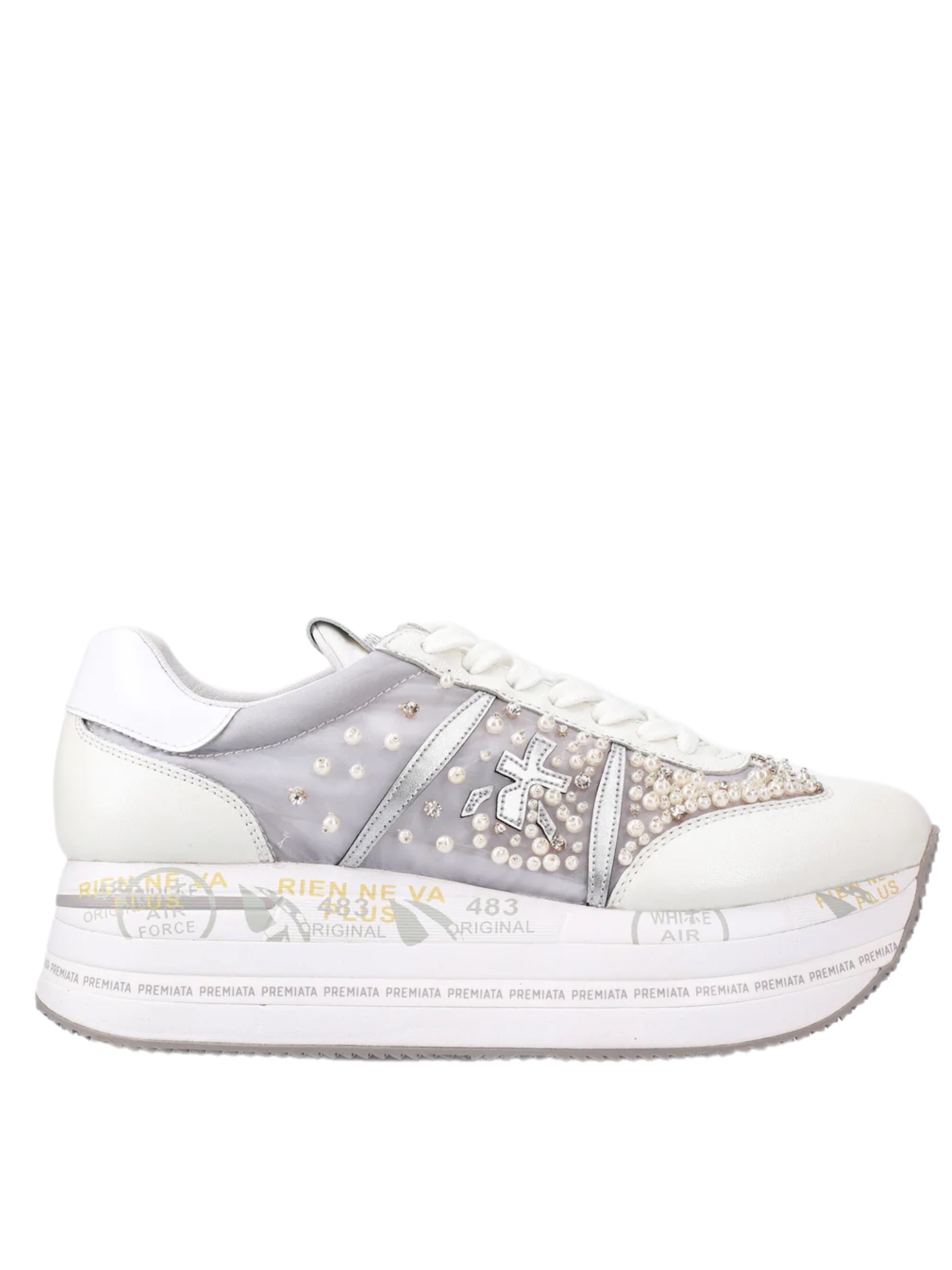 Кроссовки Beth сетка со стразами и жемчугом. Красочное и персонализированная подошва с отмеченной наградами трафаретной печатью logata.