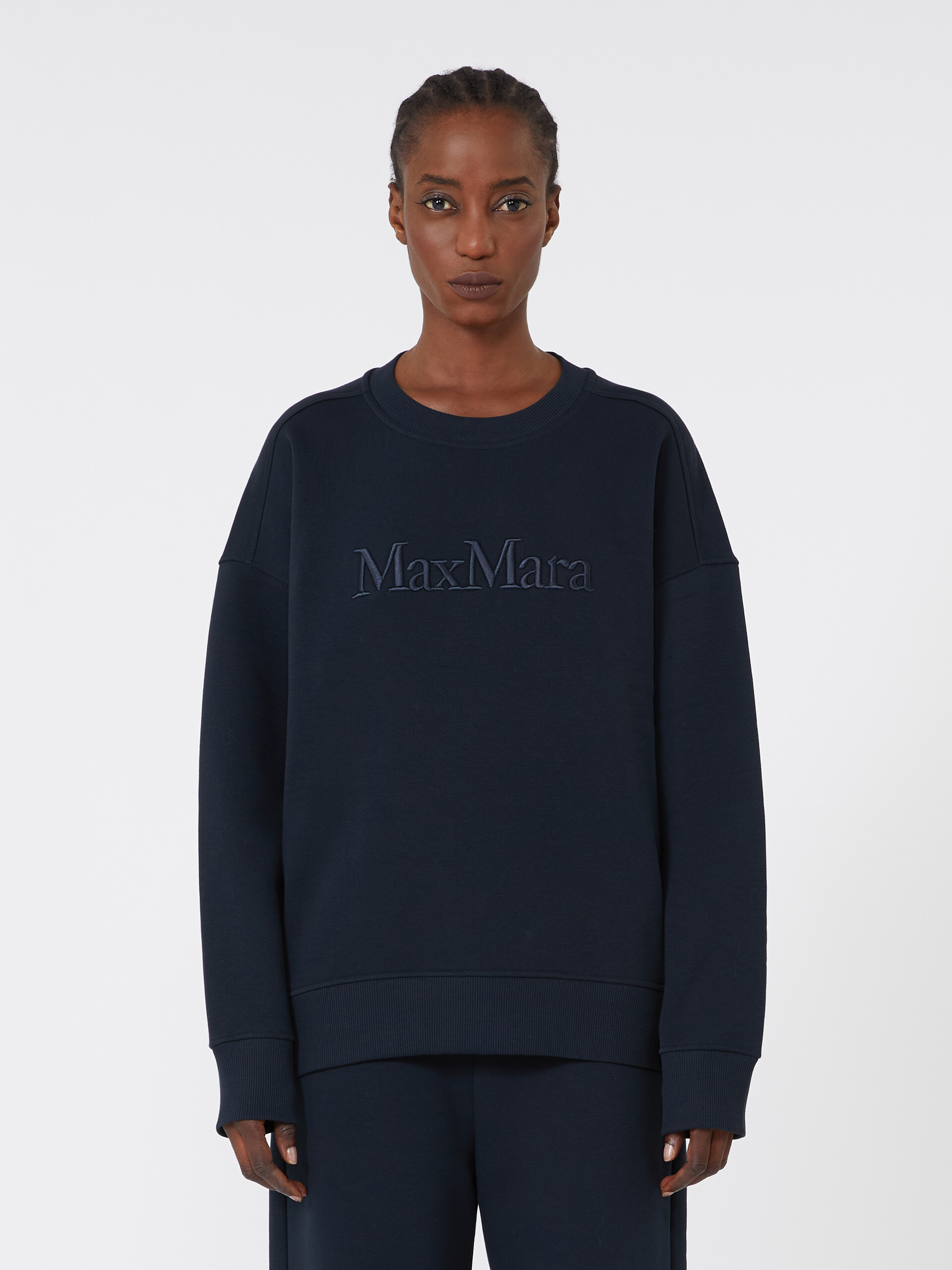 Мягкая толстовка с логотипом бренда Max Mara, вышитым спереди. В комплекте с брюками свободного кроя.