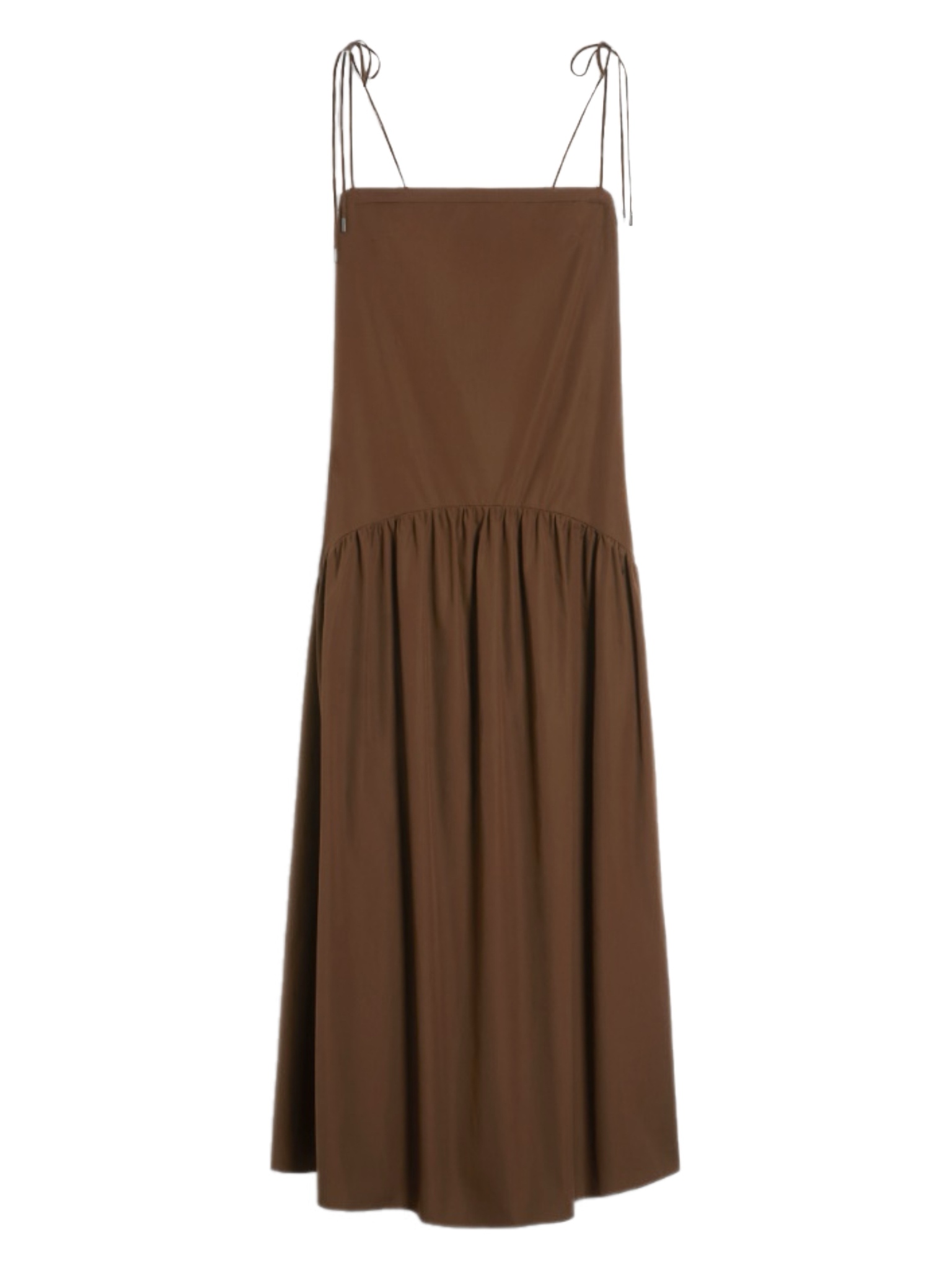 Платье-слип из мягкого чистого хлопкового поплина. Стиль имеет женственный силуэт с широкой асимметричной оборкой на подоле, которая добавляет объем и движение. Тонкие плечевые ремни с небольшим бантом и боковыми карманами. Боковая застежка-молния.