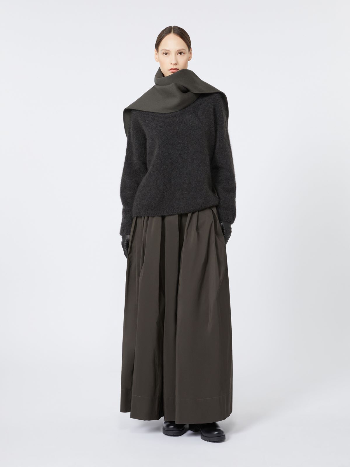 Юбка Max Mara в насыщенном зеленом цвете, выполненная из смеси хлопка и полиэстера, обладает легкой текстурой и элегантным силуэтом. Модель с высокой посадкой и пышной юбкой создает женственный и современный образ, подчеркивая изысканный стиль. Простой крой без лишних деталей идеально подходит для создания классических и модных образов.