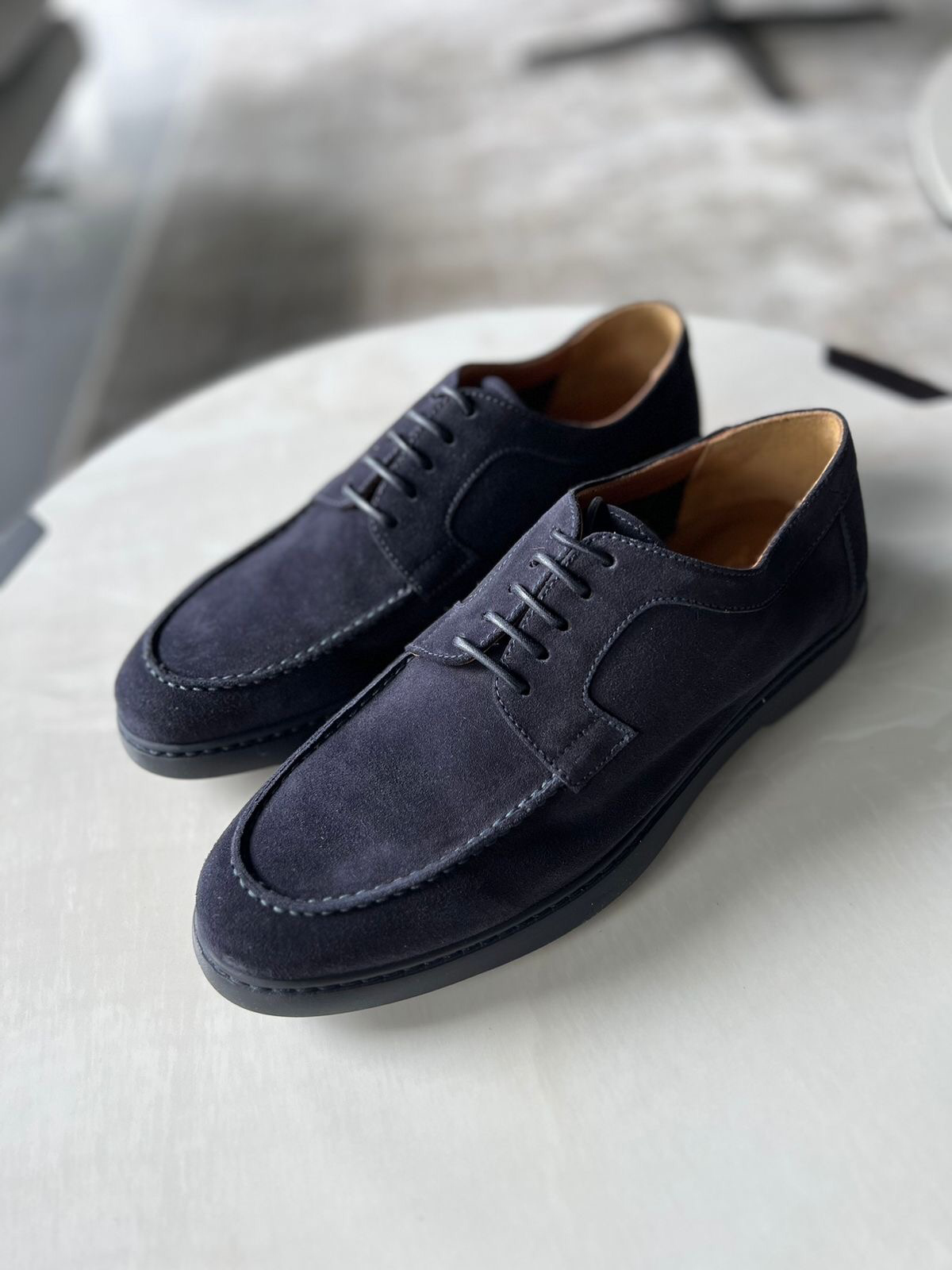 Туфли на шнуровке из синей замши выделяются своим непринужденным стилем. Эта модель воплощает в себе идеальное сочетание мастерства и универсальности. Она подойдет для создания разнообразных образов. В этой модели используются классический рельефный шов и конструкция Blake, которая обеспечивает прочность и мягкость. Сделано в Италии.