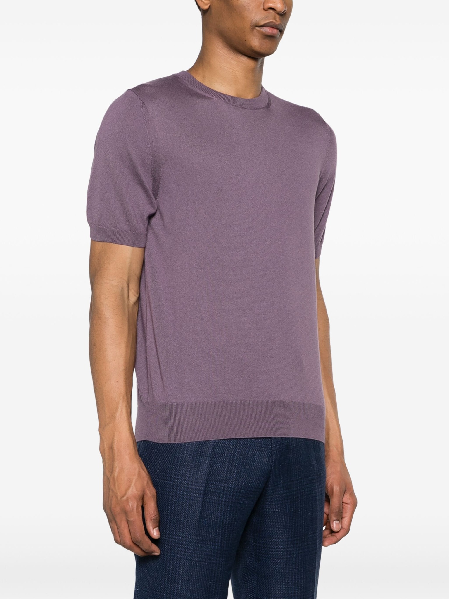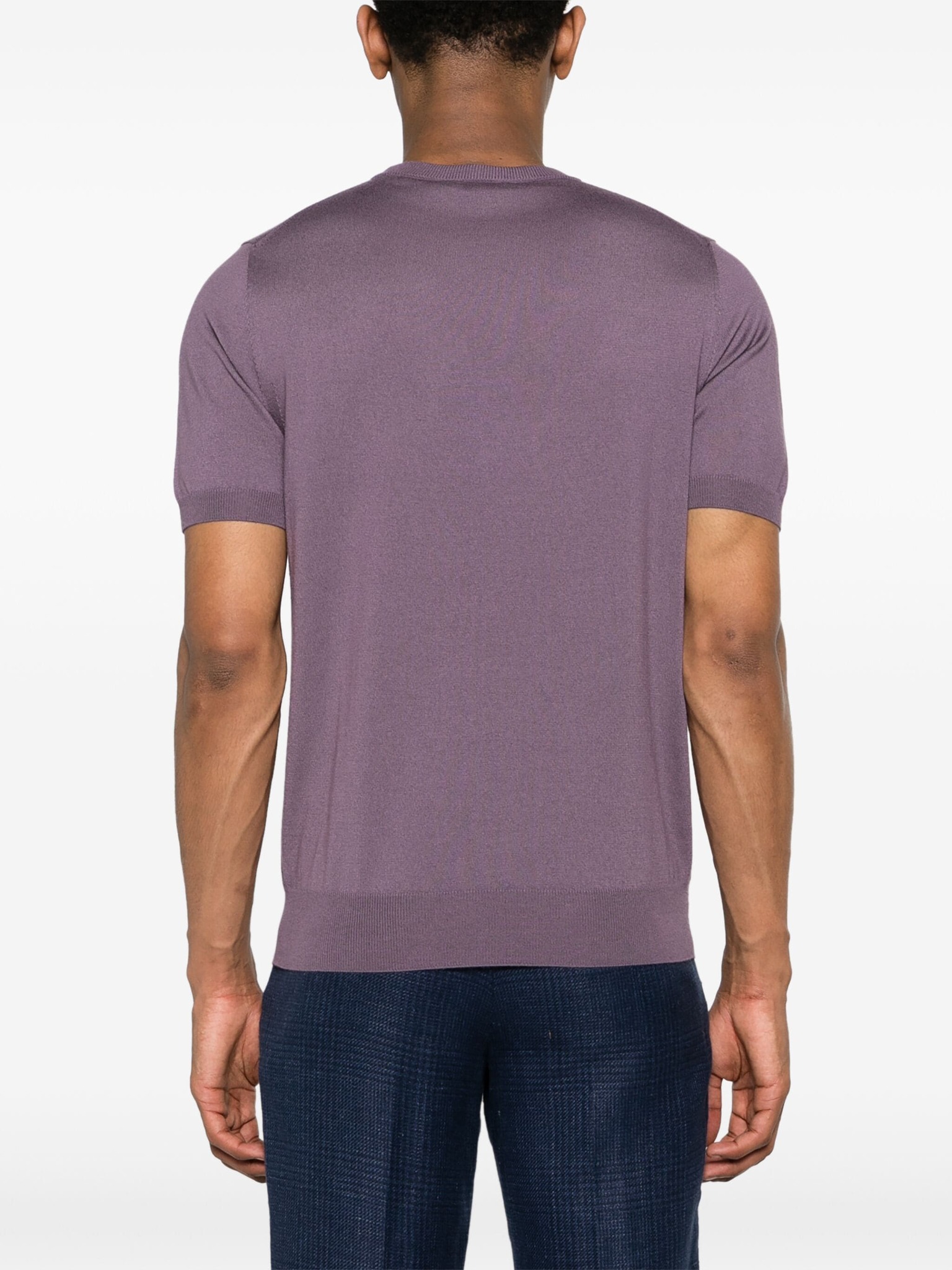 Идеальное сочетание мягкости и характерного стиля, этот круглый вырез с короткими рукавами изготовлен из сверхтонкой бритой смеси хлопка нежного цвета. Легкий и расслабленный дизайн украшен ребрами на воротнике, краях рукава и подоле. Классика гардероба, которая добавляет мягкости и вкуса к повседневным образам современного мужчины.