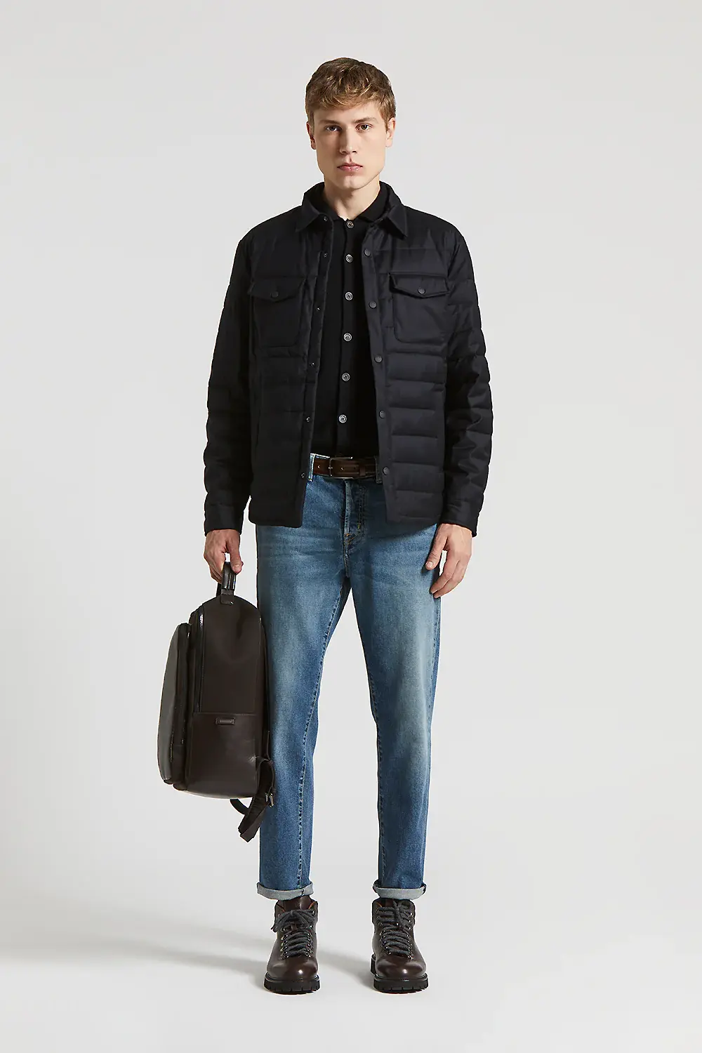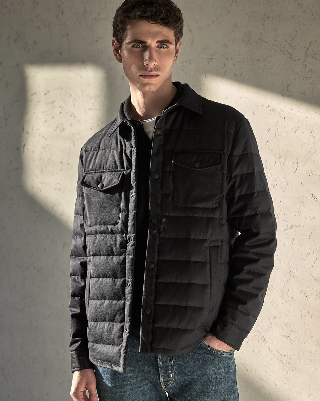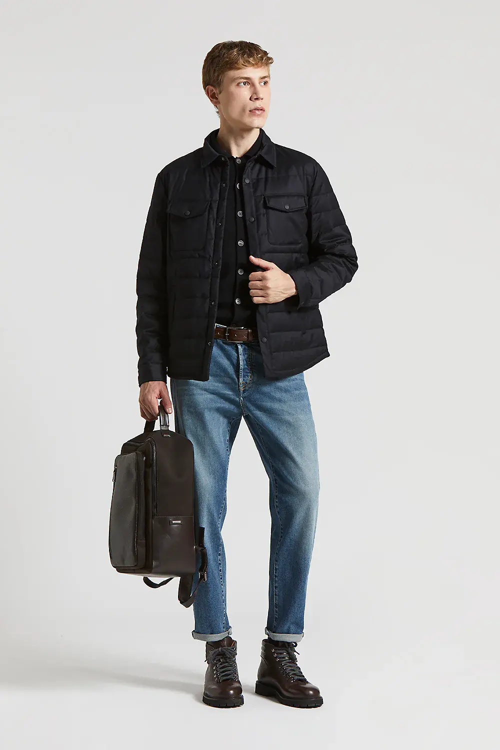 Куртка-рубашка, изготовленная из фланели из чистой натуральной шерсти Loro Piana, обеспечивает защиту от дождя и ветра благодаря технической мембране и обработке Green Storm System®.