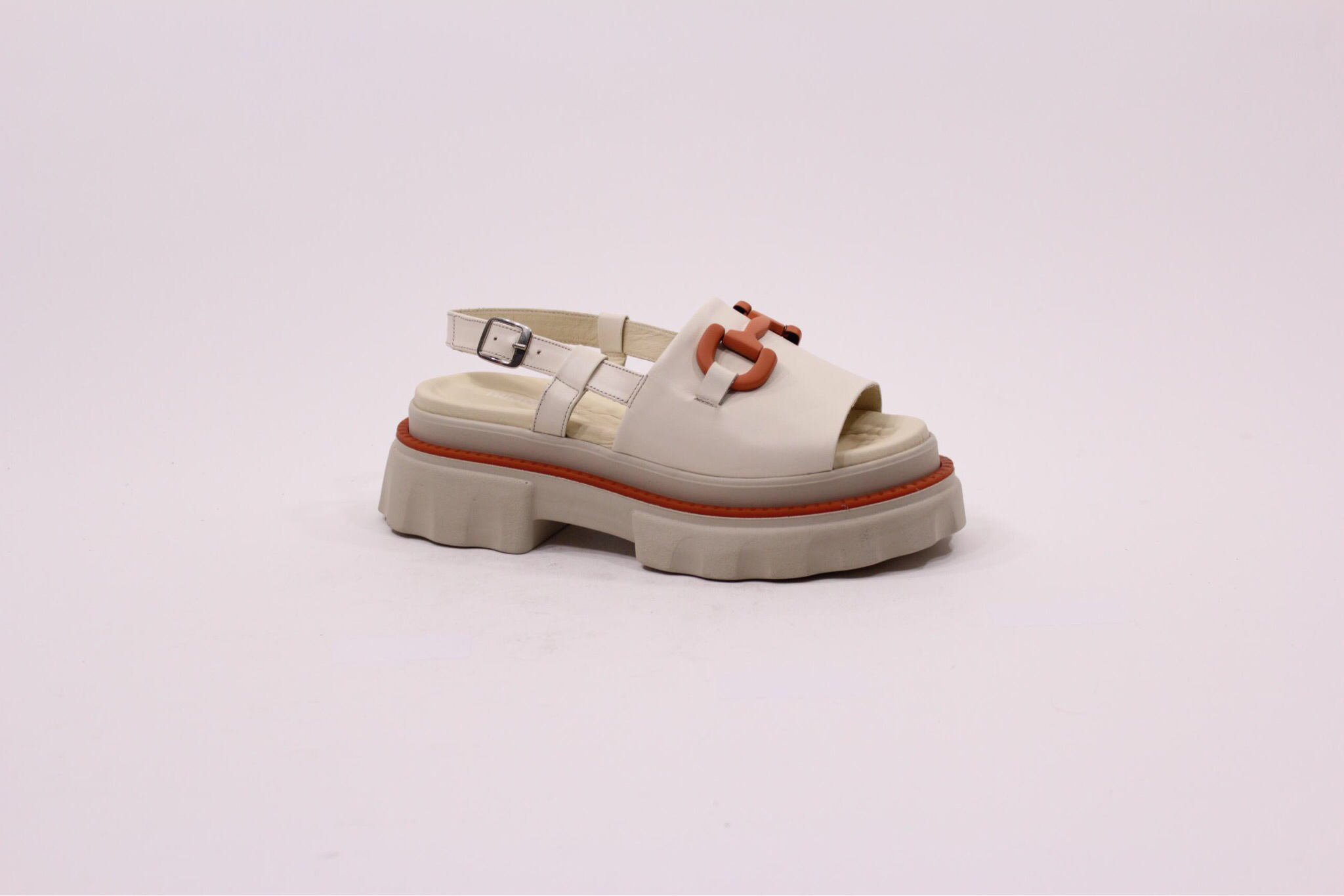Кожаные босоножки на танкетке с аксессуаром спереди.
