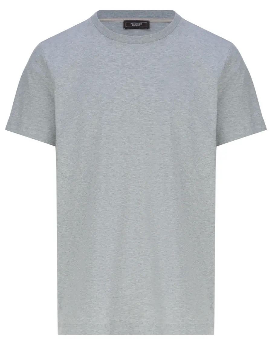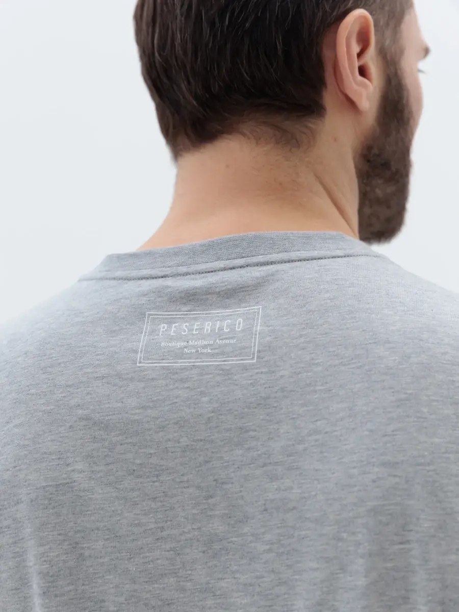 Футболка с круглым вырезом из чистого хлопкового трикотажа обеспечивает уникальный комфорт, который слегка облагает тело. Дизайн имеет принт со словами Peserico Boutique Madison Avenue New York, а контрастные детали на воротнике и рукаве добавляют современный штрих. Удобная и с регулярной посадкой, эта футболка идеально подходит для стильного повседневного и расслабленного образа одежды для отдыха.