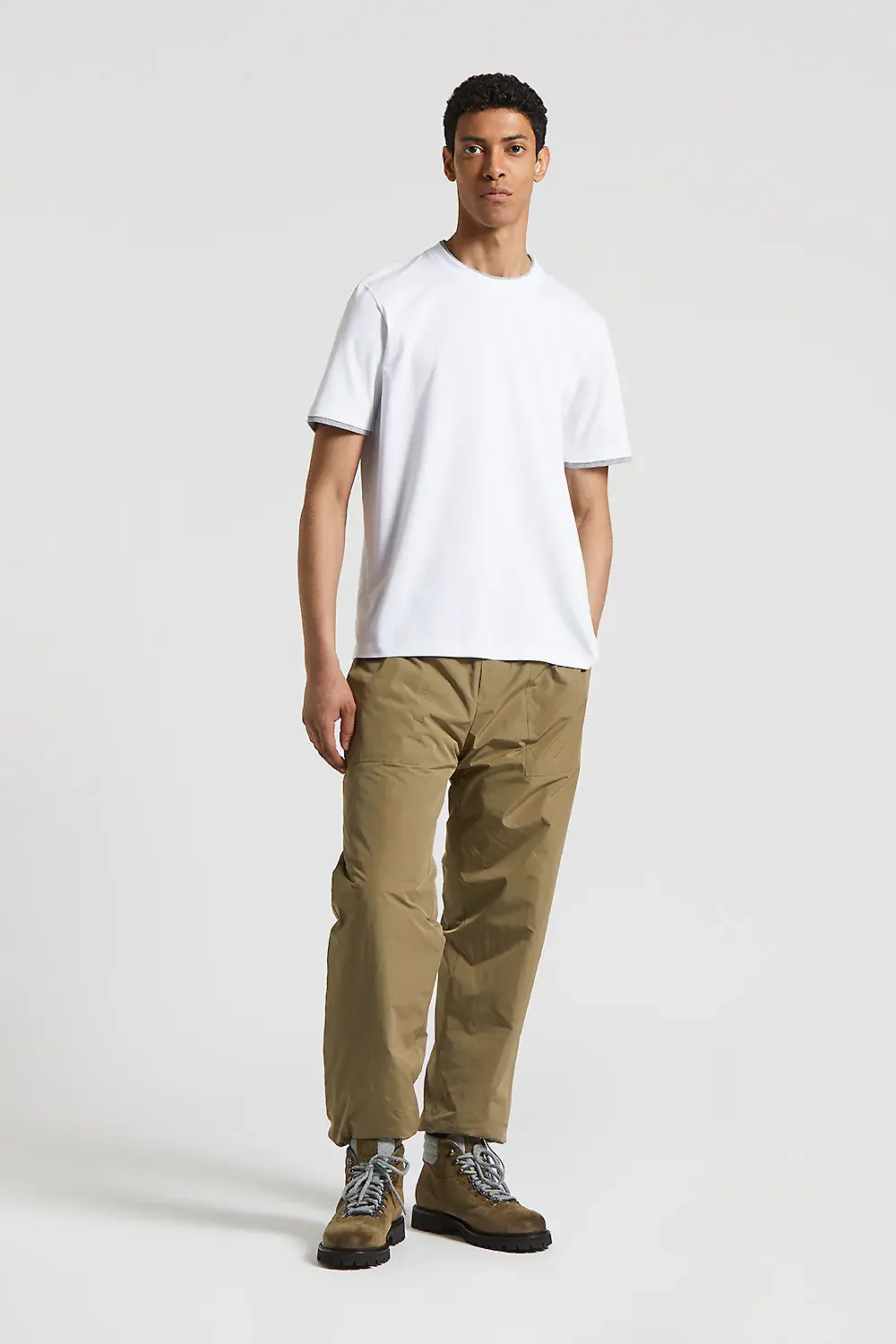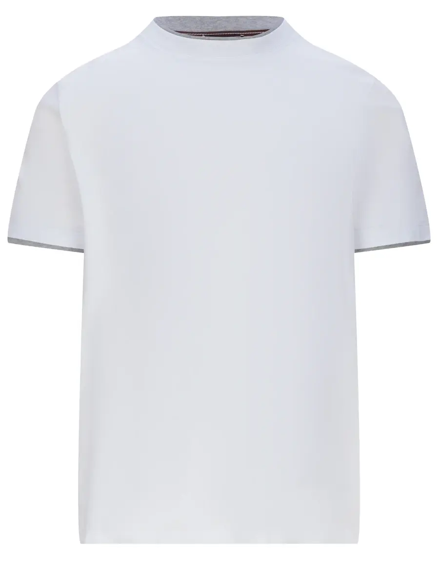 Футболка с круглым вырезом, изготовленная из мягкого чистого хлопкового трикотажа, обеспечивает ощущение обволакивающего комфорта и легкости на коже. Заниженный дизайн дополнен логотипом "PESERICO" на задней части воротника и контрастными деталями на воротнике и подоле рукава, которые добавляют современный штрих. Эта футболка идеальный выбор для повседневного и расслабленного образа.