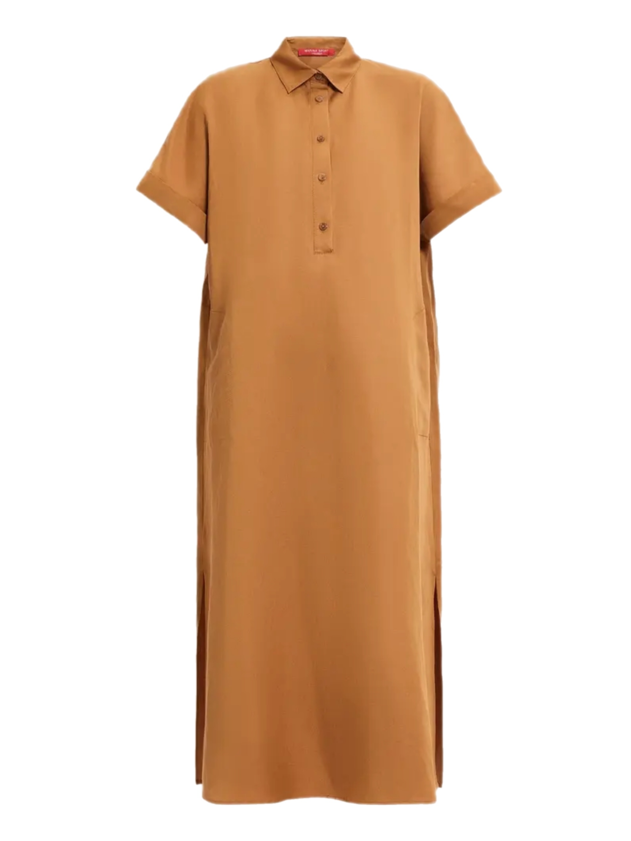 Платье от Marina Rinaldi в бежевом цвете, выполненное из смеси 59% лиоцелла и 41% льна, обладает нежной текстурой и элегантным силуэтом. Короткие рукава и классический воротник придают модели современный и утонченный вид, подчеркивая ее универсальность и комфорт.