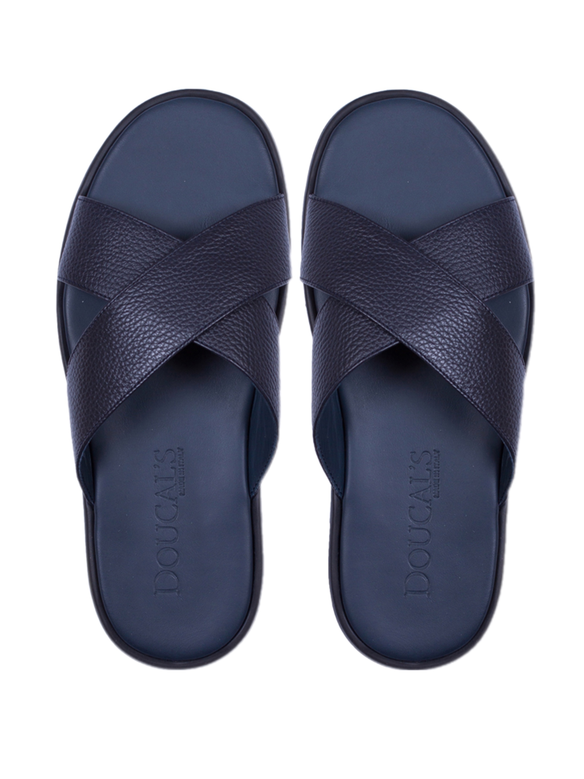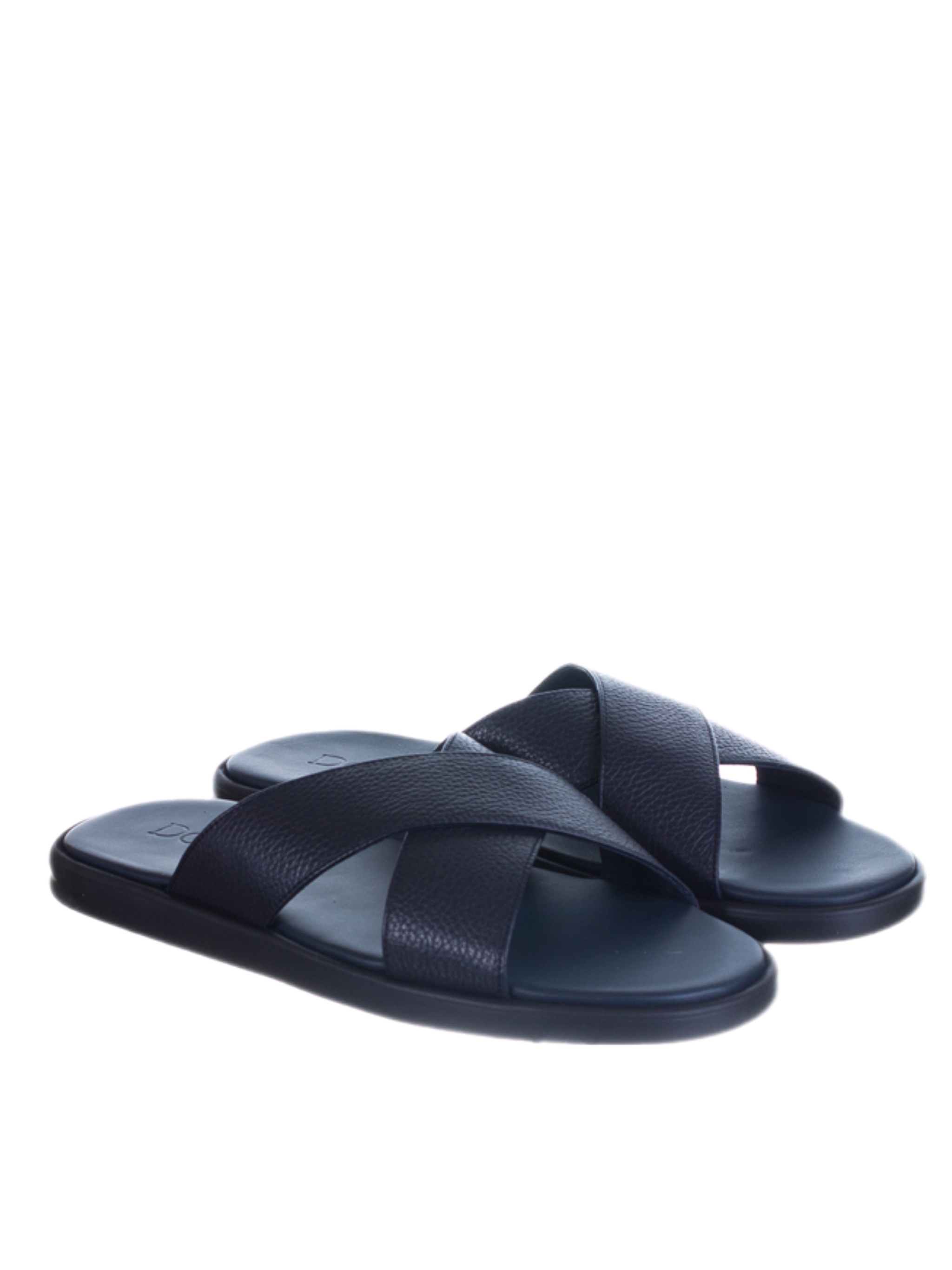Кожаные шлепанцы темно-синего цвета с перекрестными ремешками. Комфортная модель на лето.