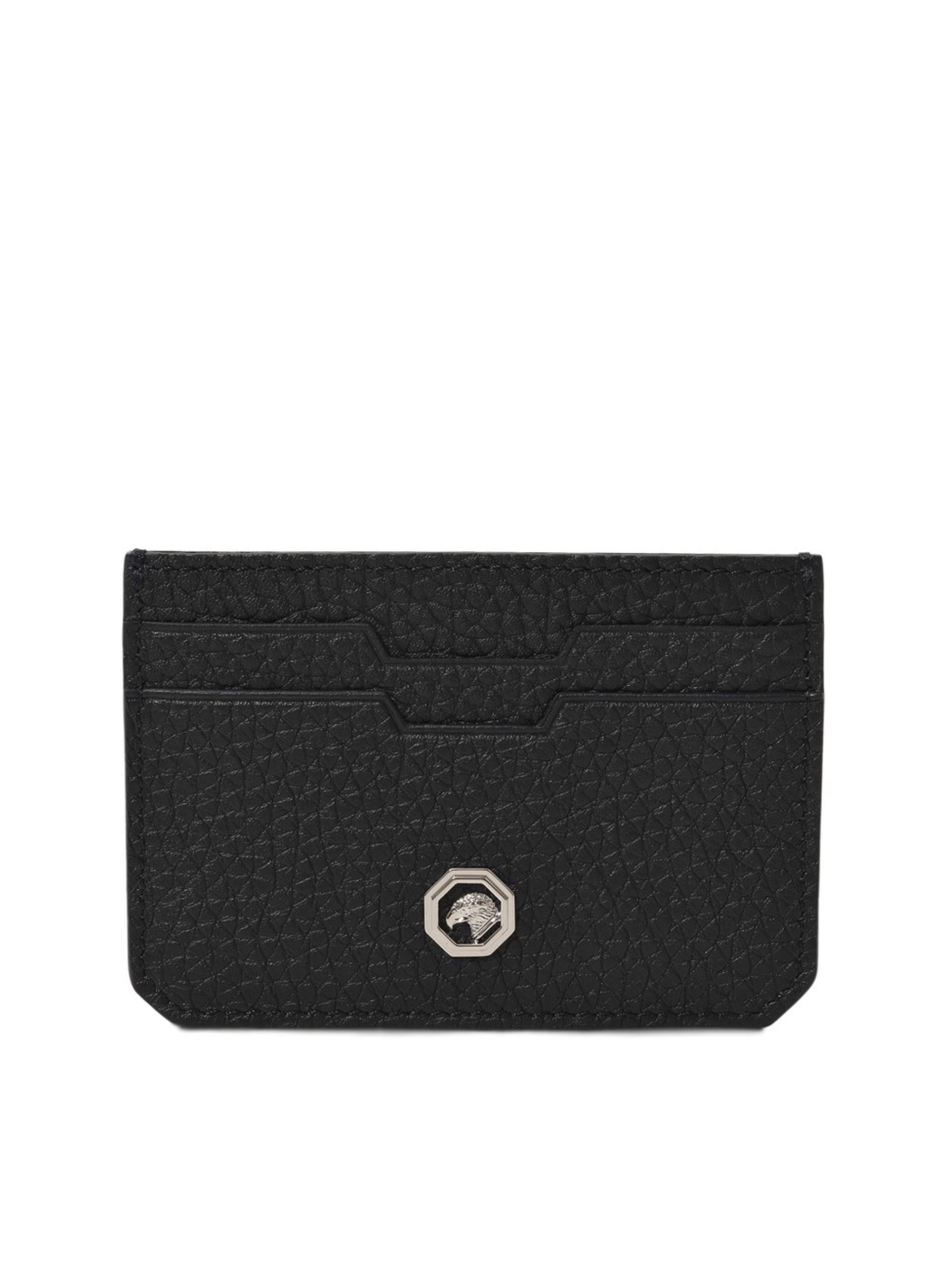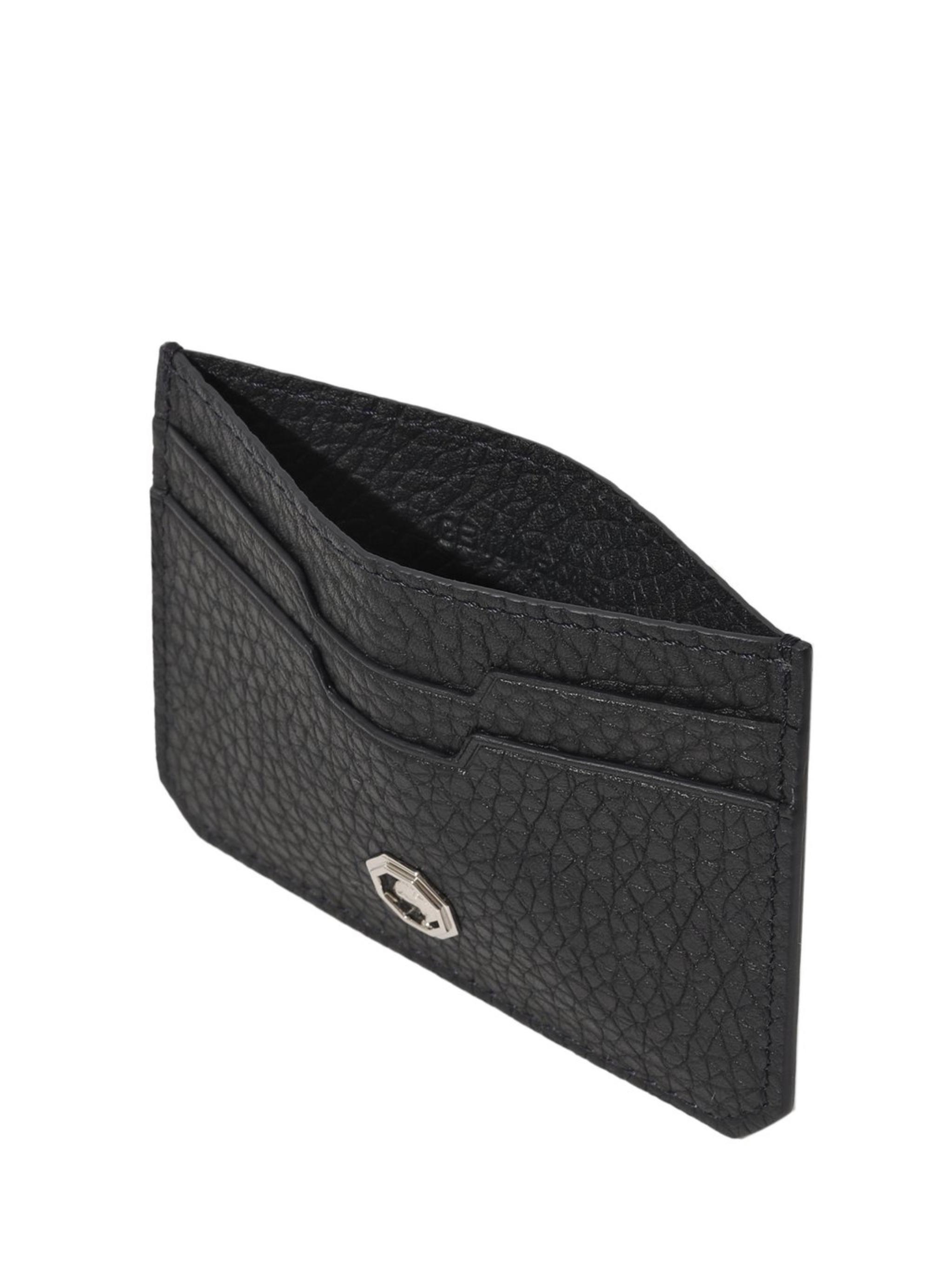 Принадлежность картхолдера марке Stefano Ricci обозначили миниатюрной накладкой в виде знакового изображения головы орла, заключенной в восьмиугольник. Для изготовления футляра использовали прочную крупнозернистую кожу. Аксессуар состоит из четырех слотов для кредитных карт и разделительного кармана для чеков и банкнот.