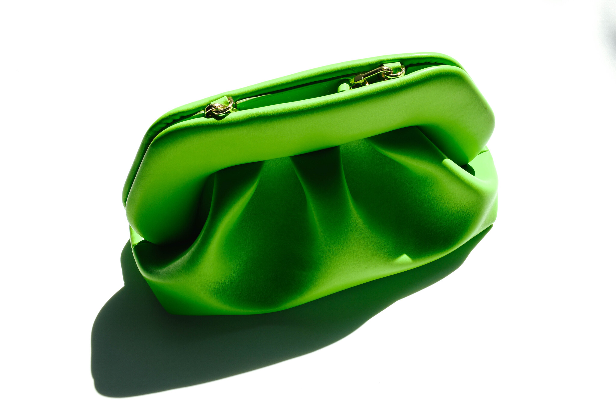 Клатч яркого салатового цвета. Высота: 16 см, Ширина: 30 см, Глубина: 11 см