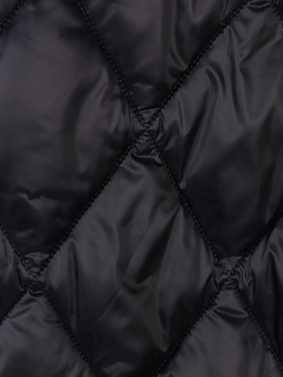 Темно-синяя удлиненная стеганая куртка от MARINA RINALDI. Модель свободного кроя с длинными рукавами, отложным воротником, накладными карманами, застёжкой на кнопки. Утепленная куртка рубашечного кроя выполнена из водоотталкивающего текстиля. Детали: отложной воротник, застежка на кнопки, три накладных кармана, разрезы по бокам, искусственный утеплитель.