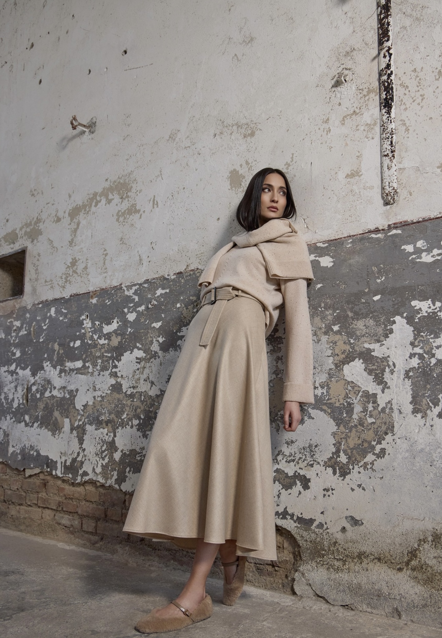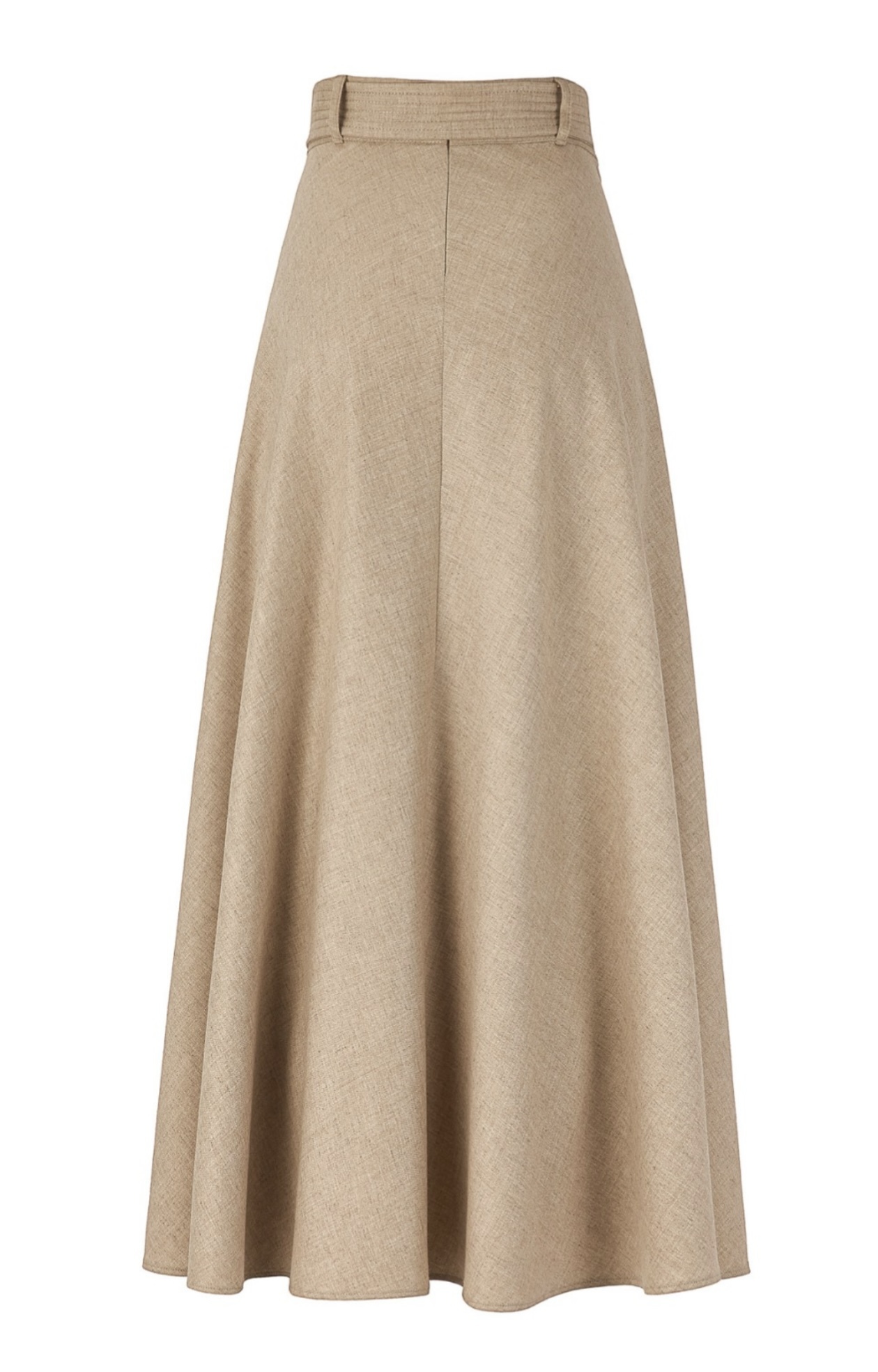 Длинная расклешенная фланелевая юбка с плавным кроем, который усиливает движение и тоньше силуэт. Согласованный фланелевый пояс деликатно определяет талию, для элегантного и женственного образа.
