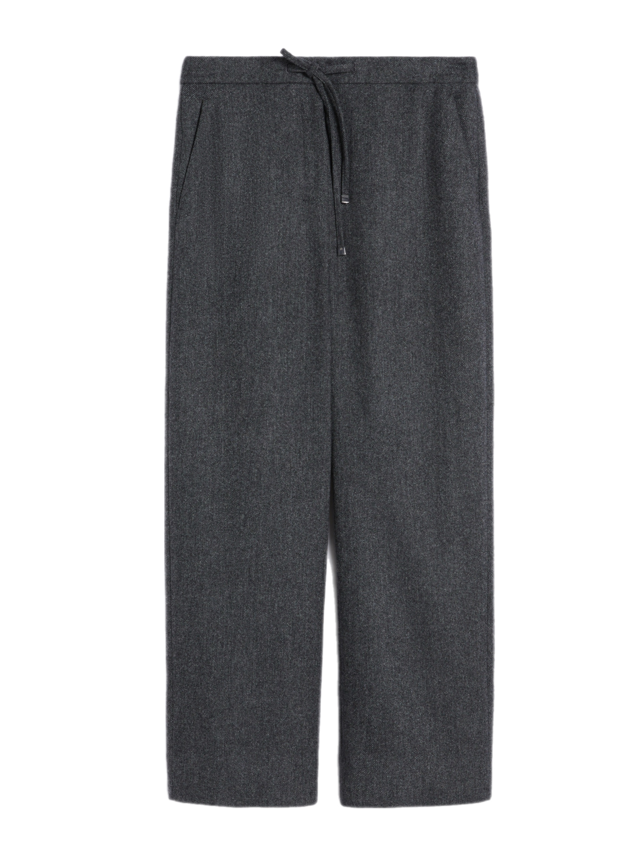 Брюки Max Mara в насыщенном сером цвете выполнены из высококачественной смеси шерсти и кашемира, что придает им нежную фактуру и утонченный вид. Свободный крой с поясом на завязках подчеркивает современный стиль, а боковые карманы добавляют практичности и элегантности. Идеальный выбор для создания образа, сочетающего комфорт и роскошь.