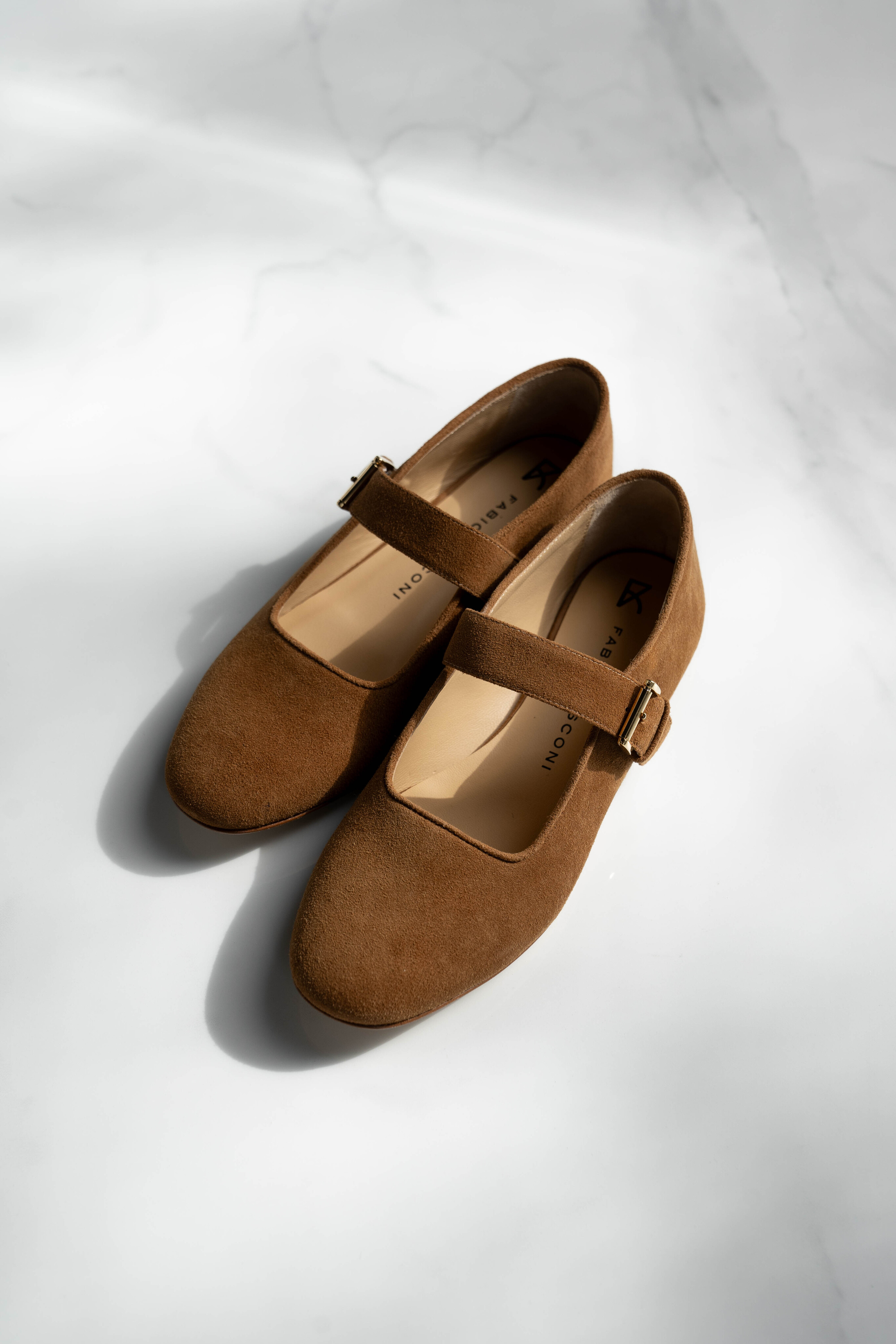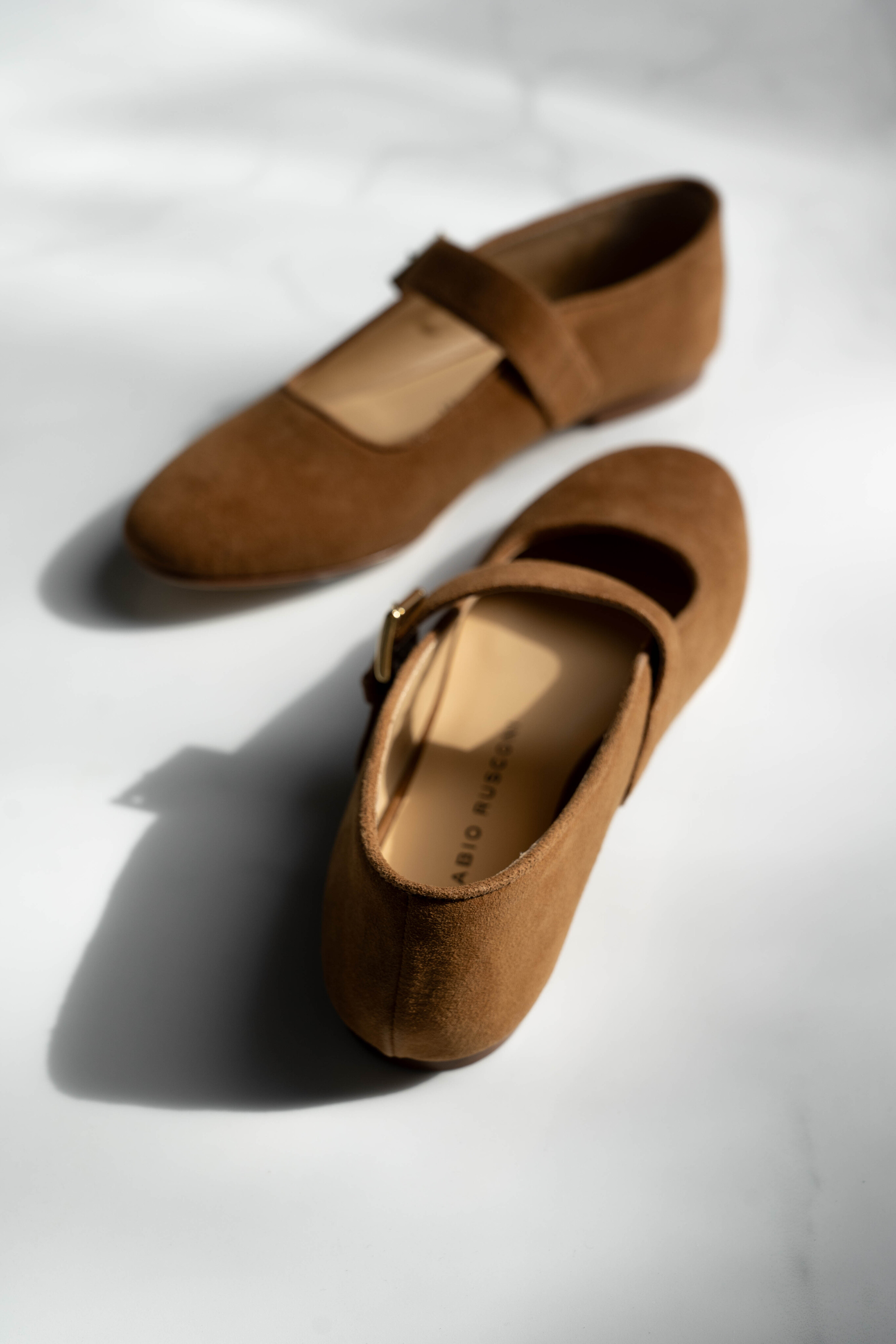 Коричневые балетки из бархатистой замши от FABIO RUSCONI. Модель с округлым мысом, ремешками с пряжками на подъеме, гибкой подошвой, низким каблуком, стелькой из натуральной кожи.