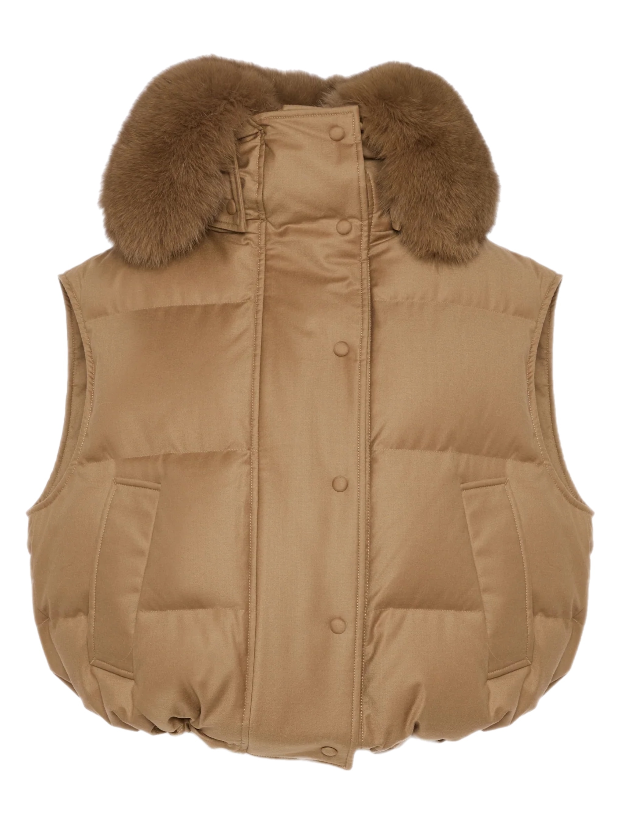 Более короткая, квадратная форма и текстура шерстяно-шелковой фланелевой ткани придают тепло и шик зимним нарядам, независимо от того, носится ли изделие отдельно или поверх куртки или пальто. Воздушный воротник из меха лисы обрамляет лицо, с двумя боковыми карманами, в которые можно поместить руки для дополнительного поза.