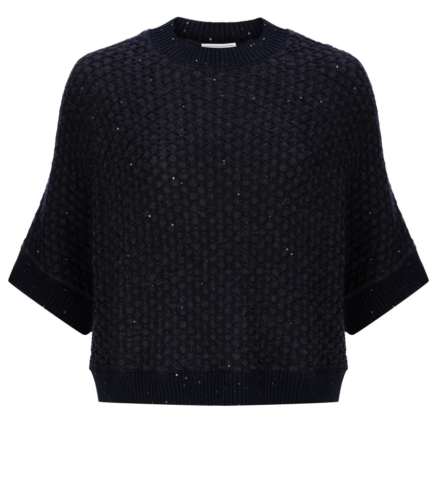 Джемпер из смесовой шерсти декорирован микропайетками — акцентом, в котором читается неповторимое мастерство итальянского кроя. Элегантная фигурная вязка отражает внимание PESERICO к деталям: переплетение тонких нитей создает воздушную текстуру пряжи, которая дарит абсолютную мягкость в носке. Изящные рукава 3/4 придают образу расслабленный характер, гарантируя комфорт в течение всего дня.