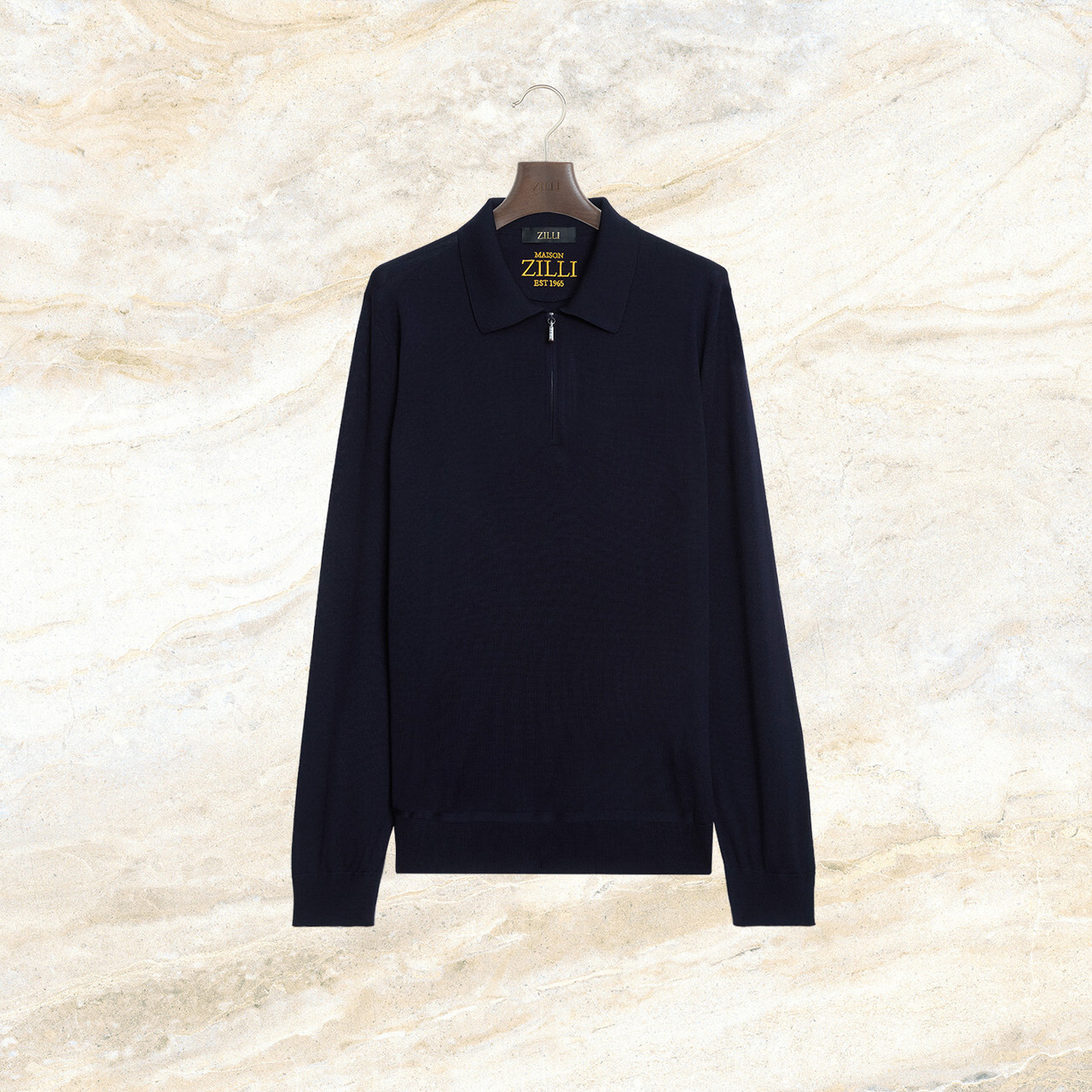 Повседневная элегантность сочетается с благородством тонких материалов в этой темно-синей рубашке-поло на молнии, изготовленной из чистой шерсти с плавной драпировкой и обволакивающей мягкостью. Тщательно сделанный ремесленниками в Les Ateliers ZILLI в Италии, каждая деталь отражает изысканный savoir-fair, укорененный в традициях роскоши. Воротник рубашки и застежка-молния формируют современный силуэт, в то время как вышитый в тон тон лев ZILLI незаметно подтверждает индивидуальность Maison. Внутри надпись "MAISON ZILLI EST 1965" говорит о наследии исключительного стиля. Ребристая отделка на воротнике, манжетах и подоле обеспечивает идеальную посадку. Носите его с полевой курткой, кашемировыми брюками и кроссовками для городской, современной и тонко роскошной атмосферы.